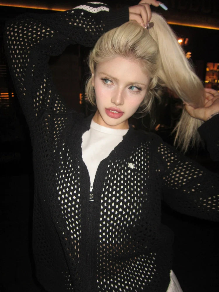 American Black Hollow Knit Jacket Sports Sun-Proof Lightweight Top
