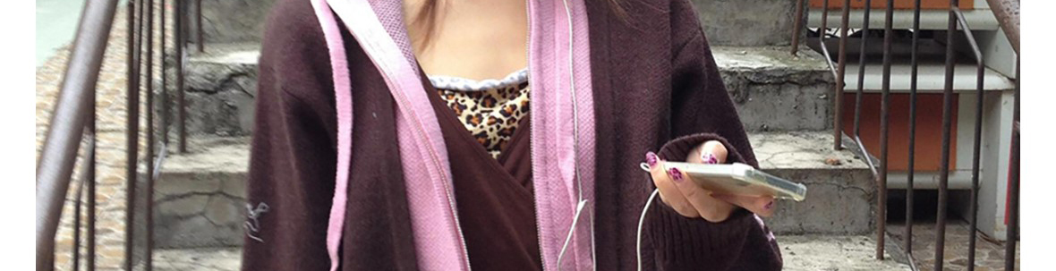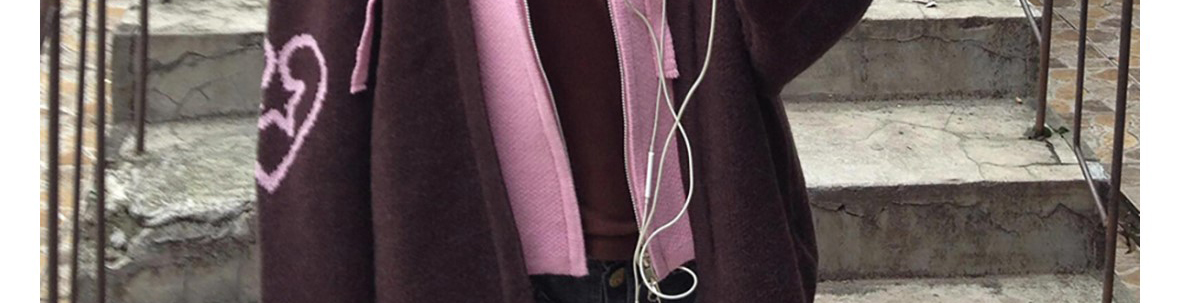 - Cardigan: Loose-fit hooded knit cardigan with colorblock layered design and jacquard zipper, soft autumn fabric.