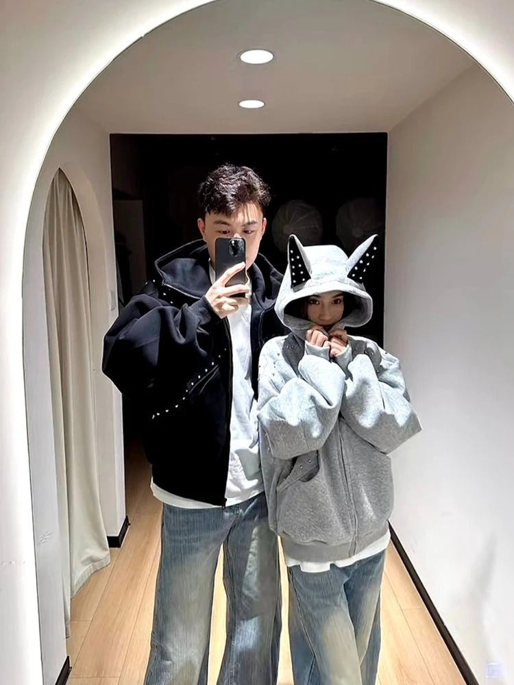 American Doberman Zip-Up Hoodie Studded Heavyweight Sweatshirt Y2K Hoodie