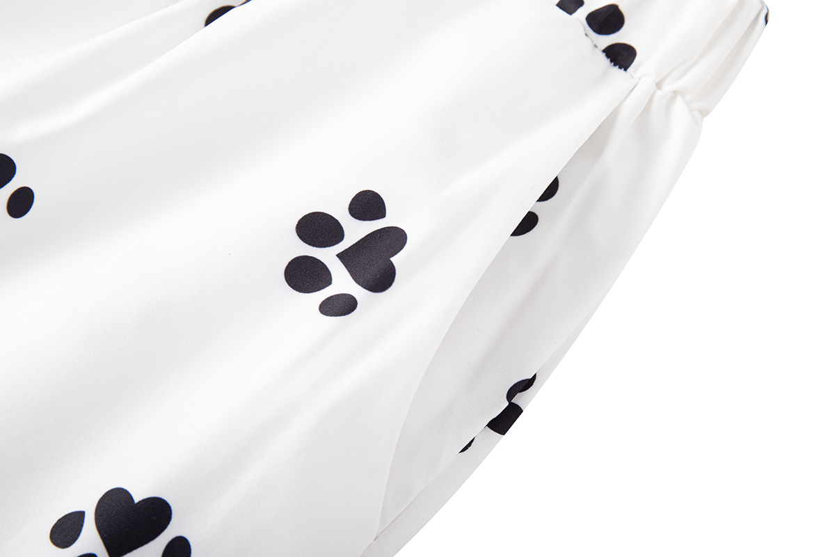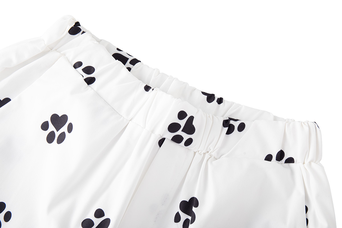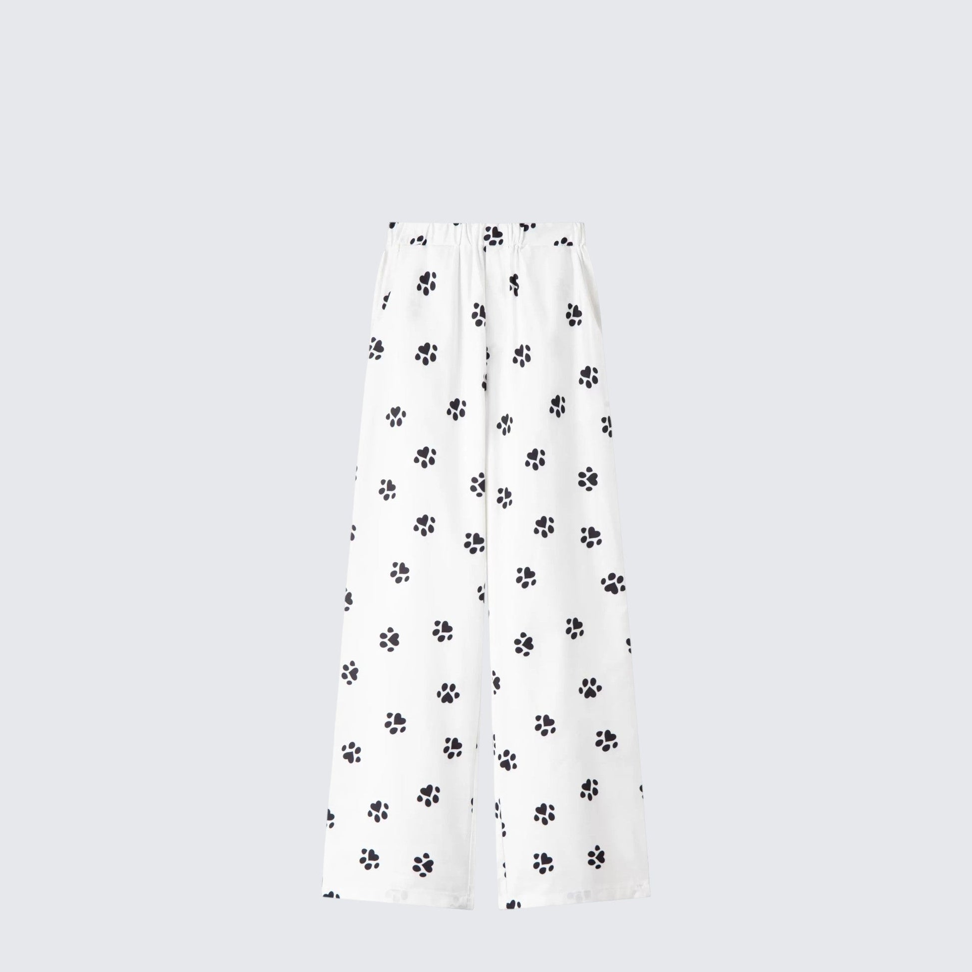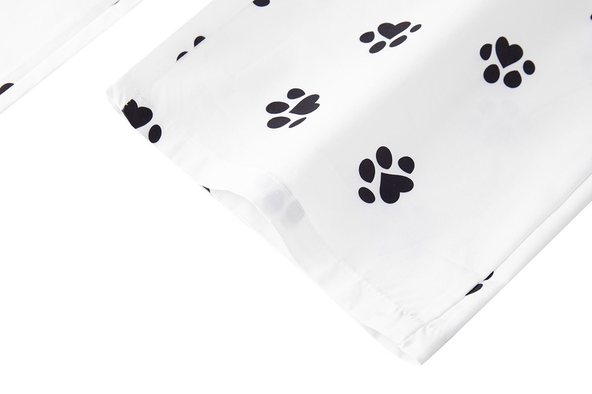 - Bottom: Straight-leg pants with dog print pattern, relaxed fit, soft and breathable fabric.