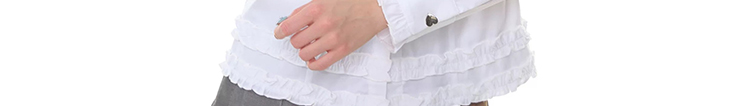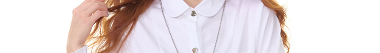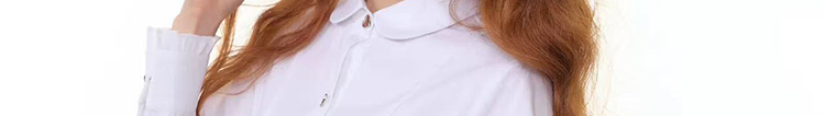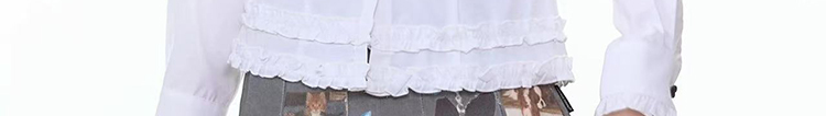 - Top: White long-sleeve shirt with doll collar and lace hem, slim-fit autumn fabric.
