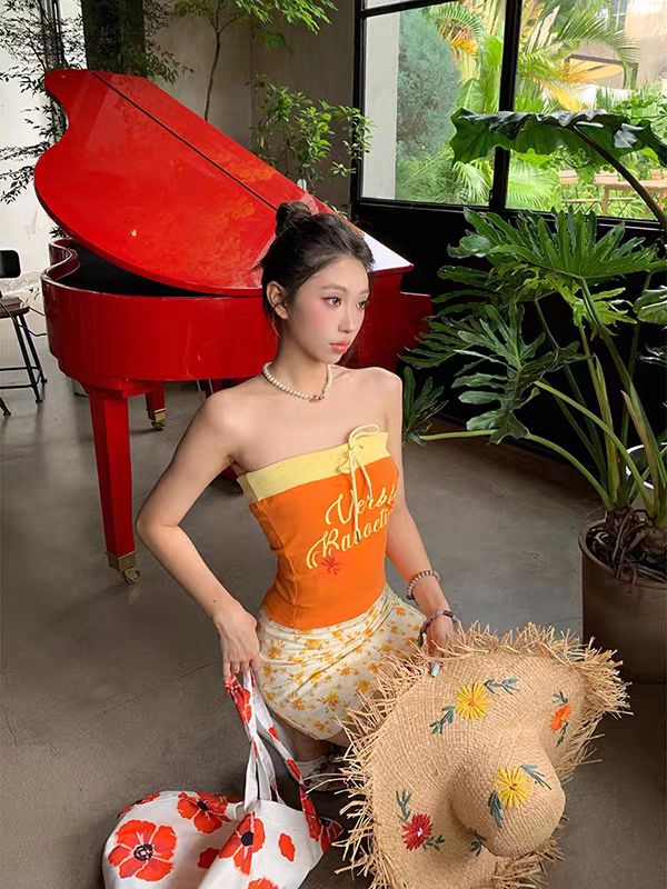 - Top: Slim-fit bustier top with drawstring detail, stretchy summer fabric for a flattering fit.