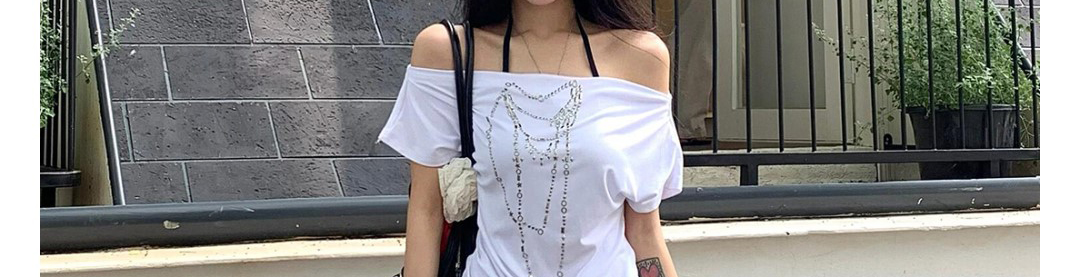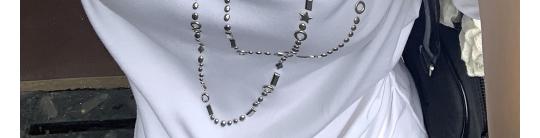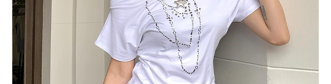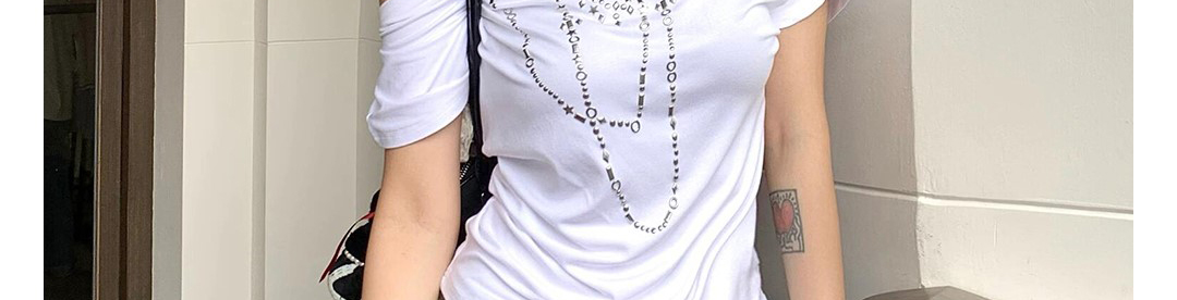 American Edgy Rivet Necklace Print Long Sleeve Top