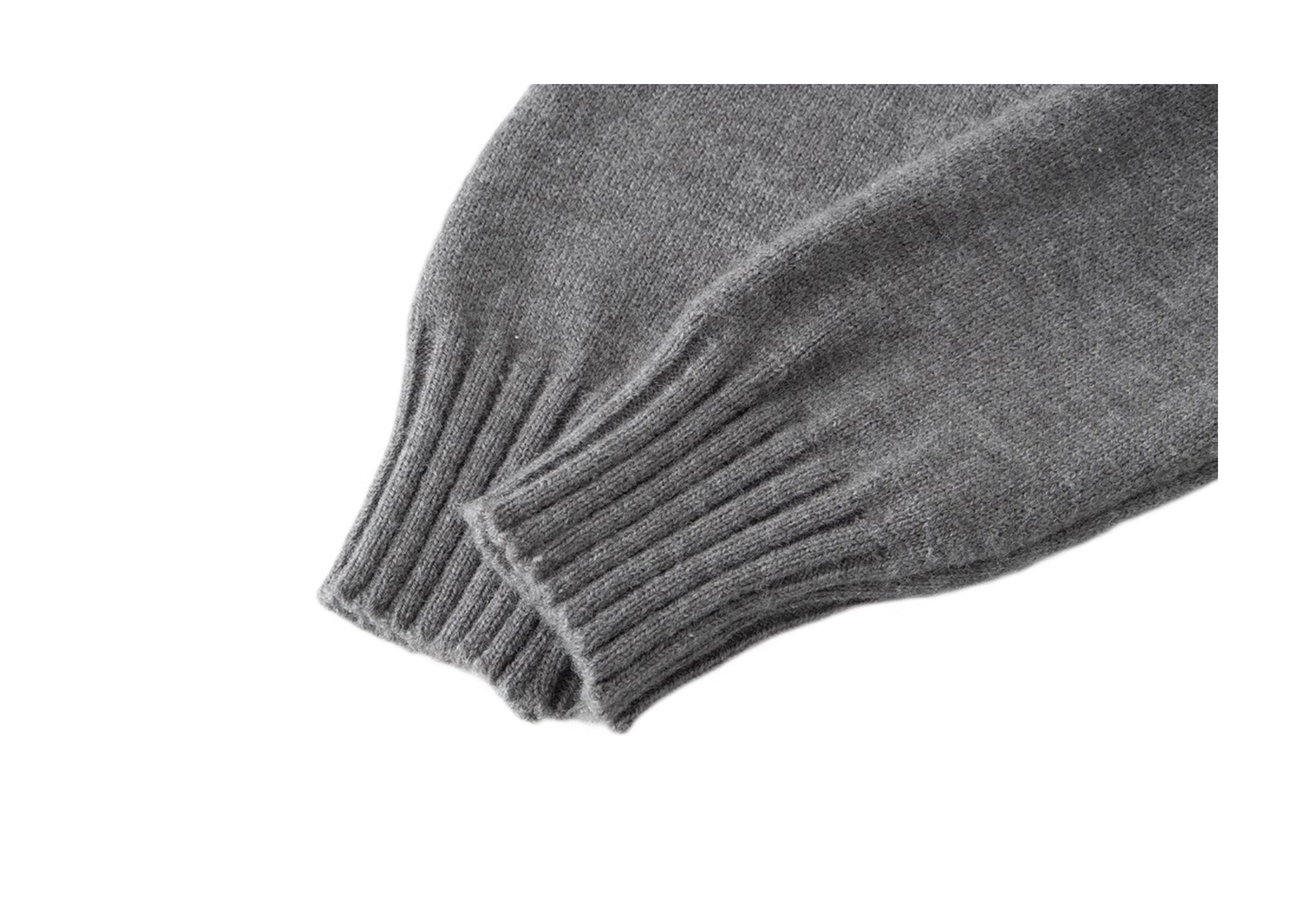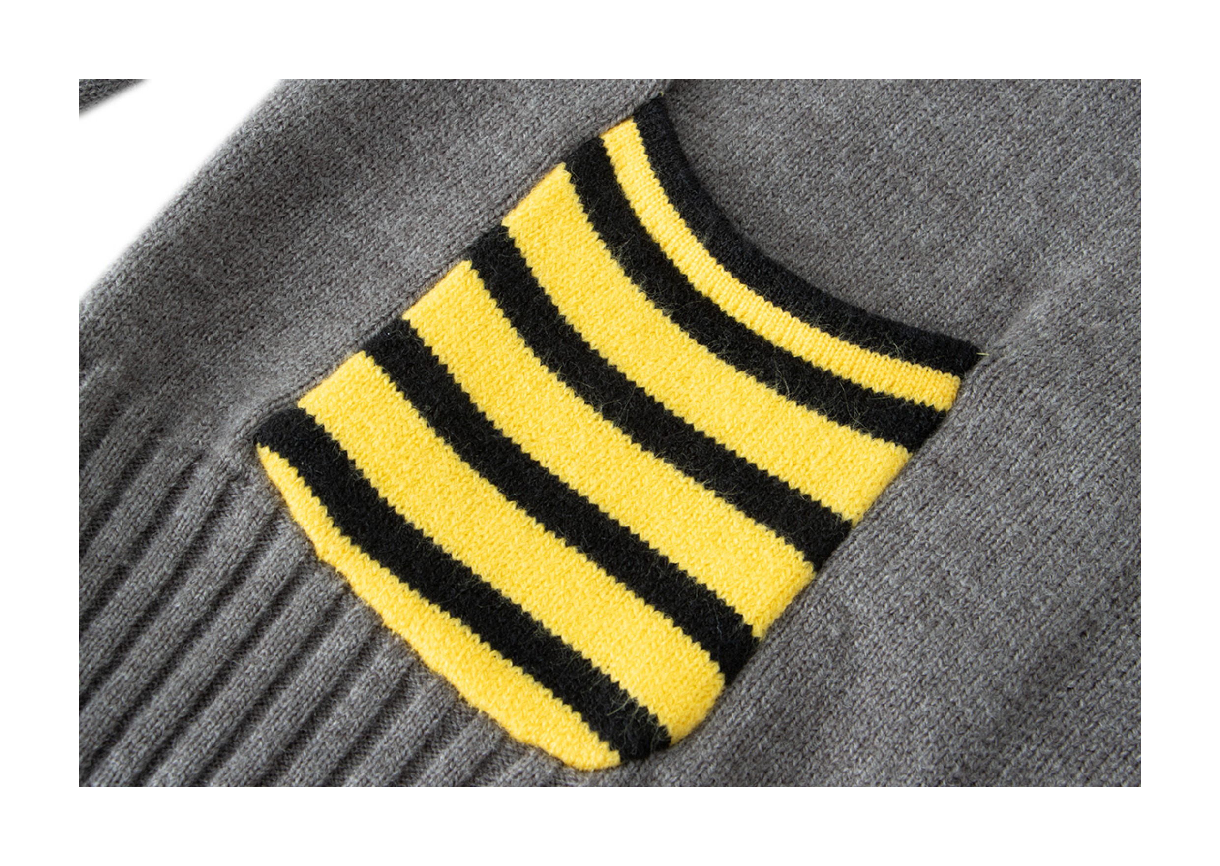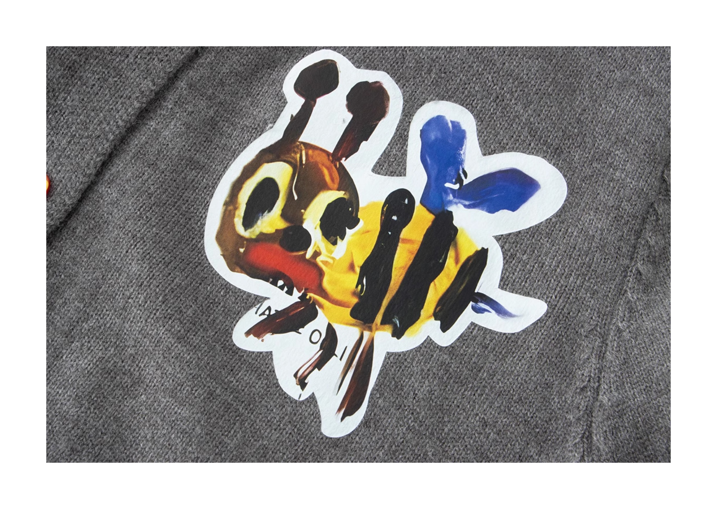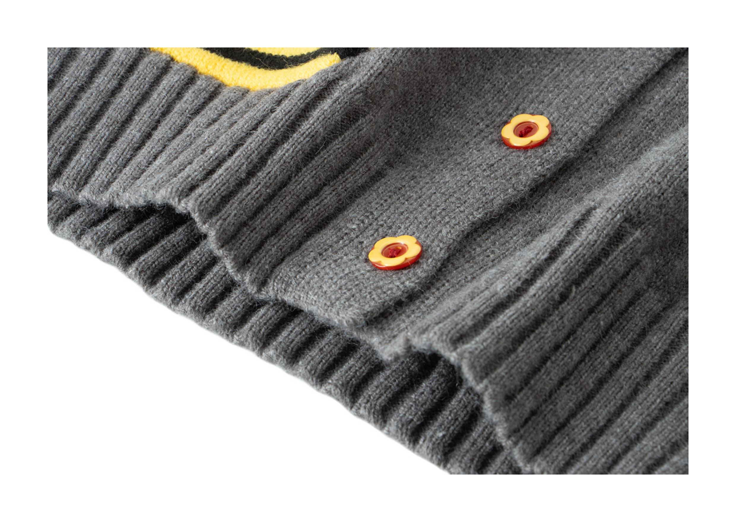 - Cardigan: Short-fit gray knit cardigan with bumblebee embroidery, spring soft fabric, slim-fit design.