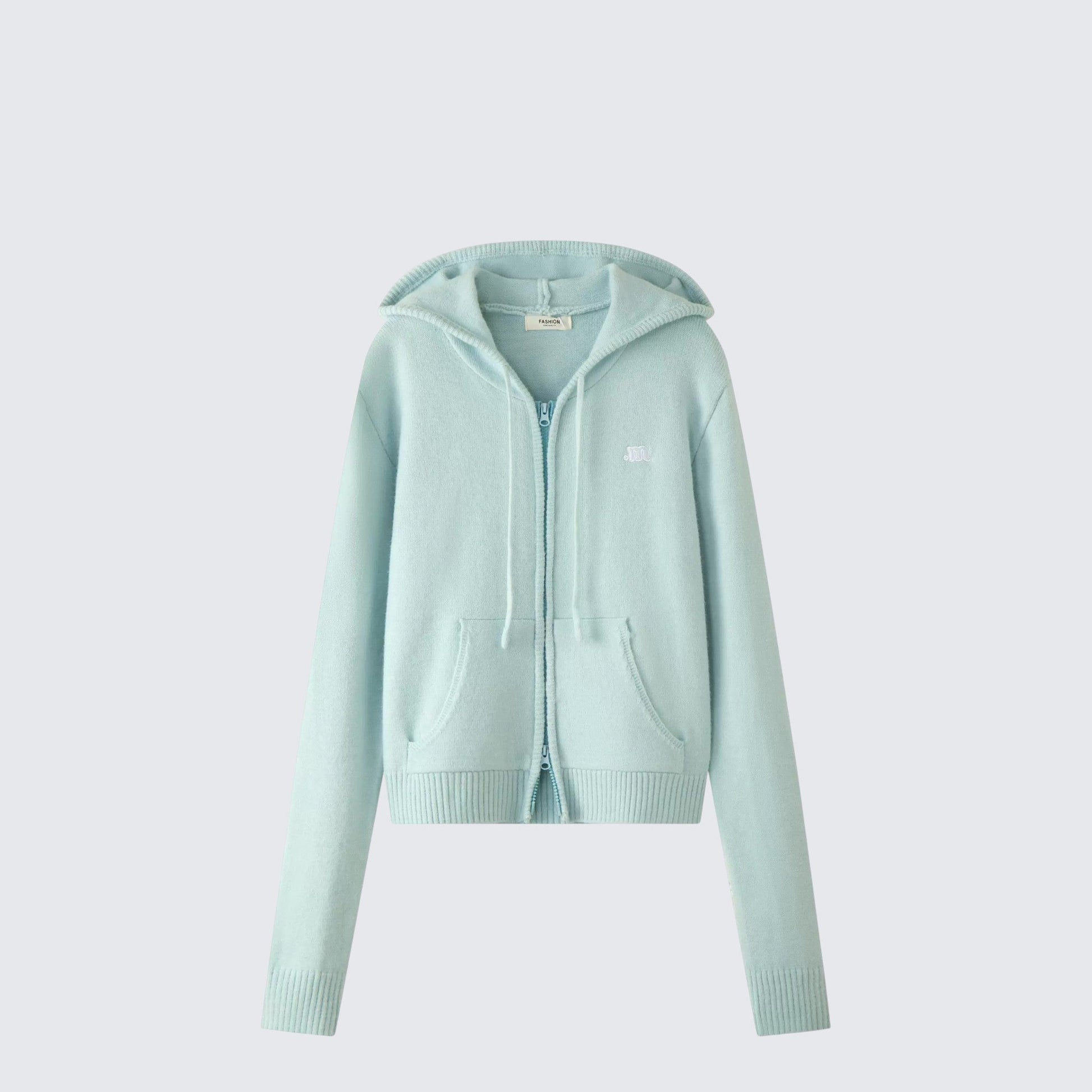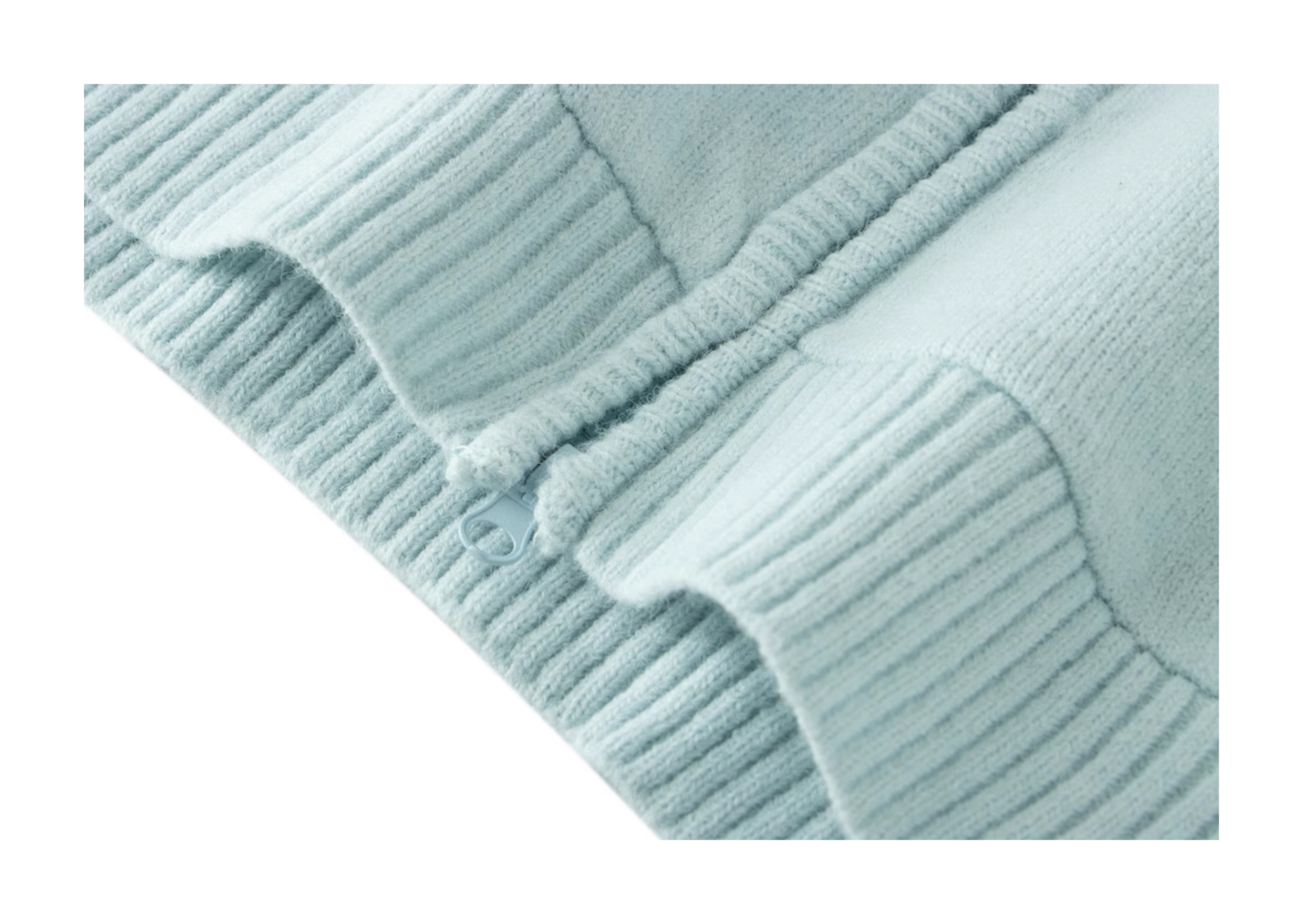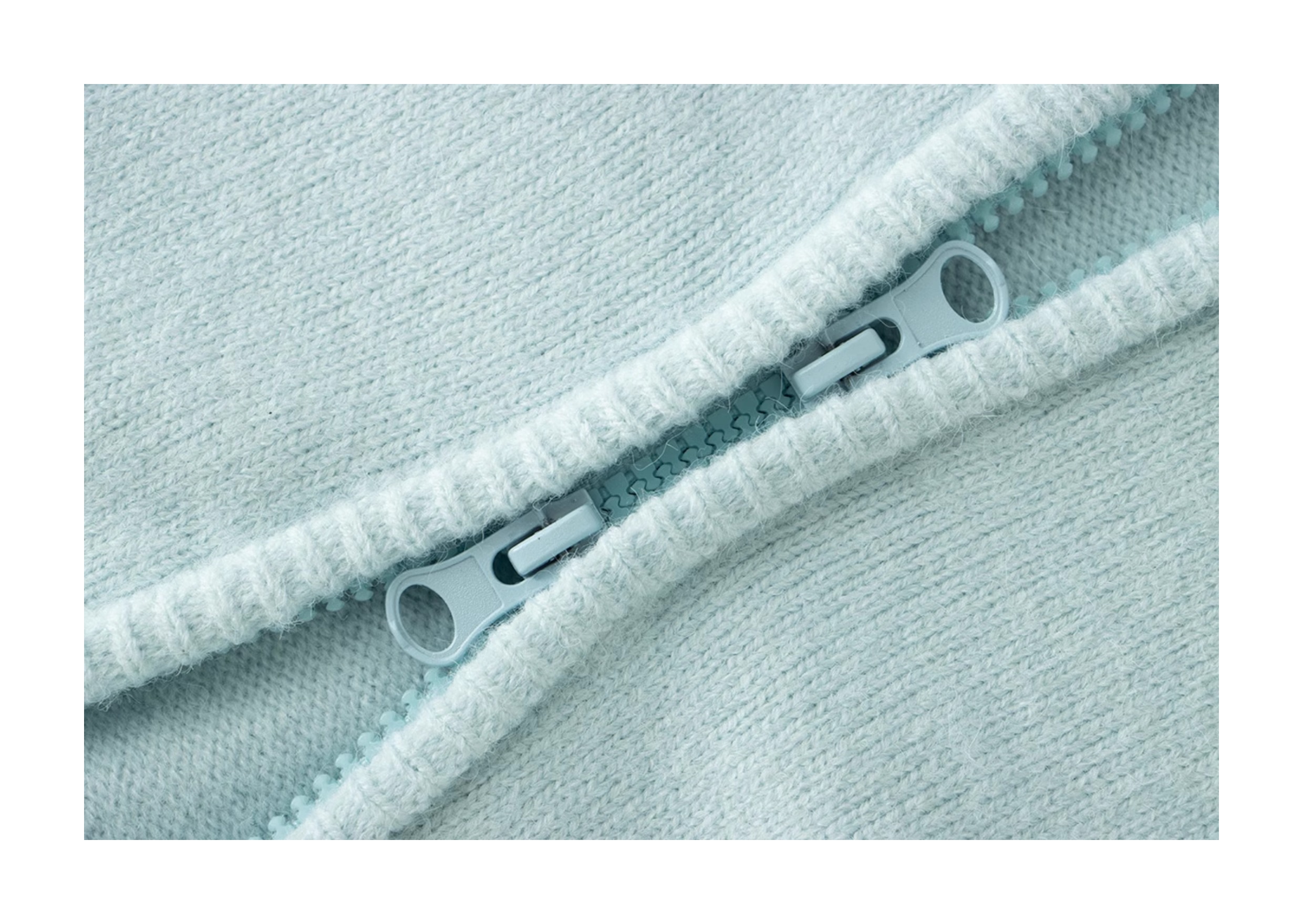 - Outerwear: Knitted hooded cardigan with dual zipper, relaxed fit, soft and comfy fabric.