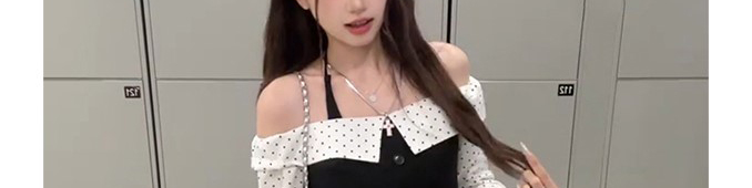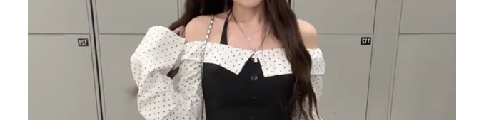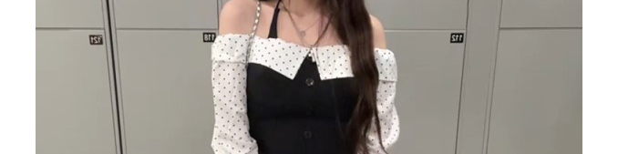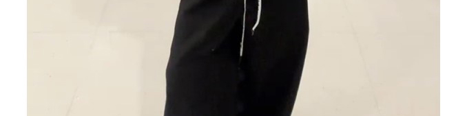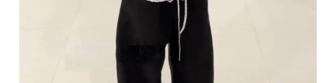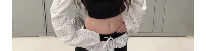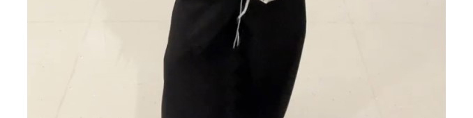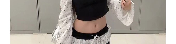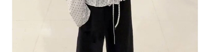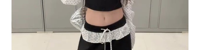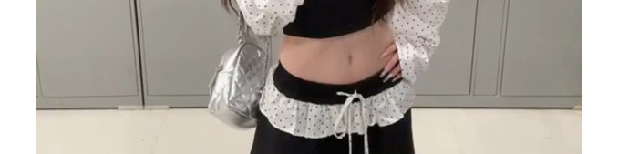 - Bottom: Black lace-trim wide-leg pants with relaxed straight fit.