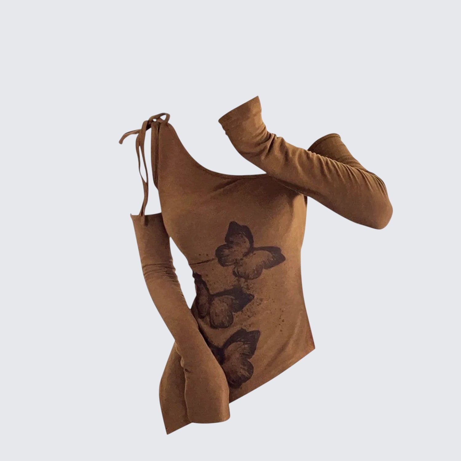 - Top: Y2K-inspired asymmetric off-shoulder long sleeve T-shirt, slim fit, vintage punk look.