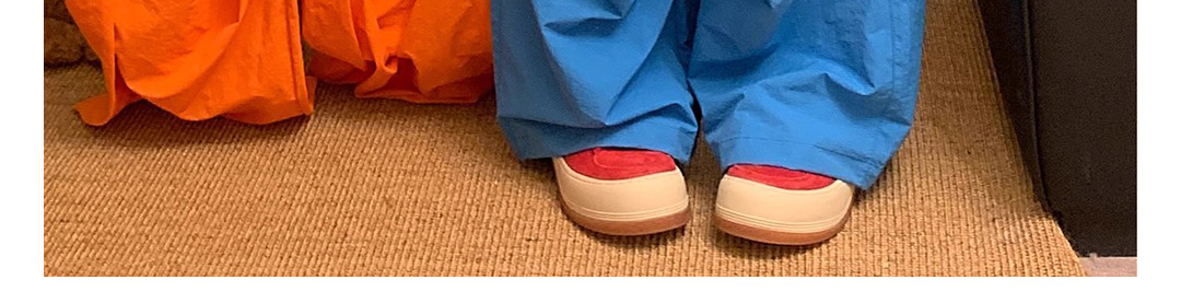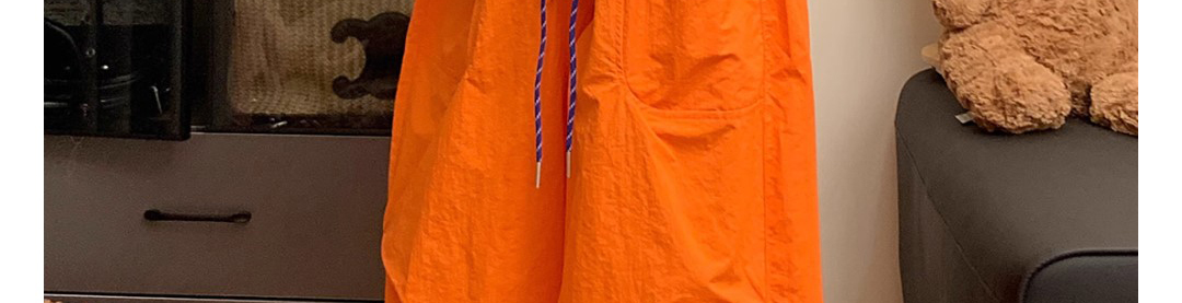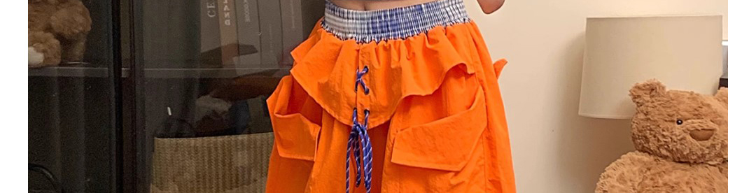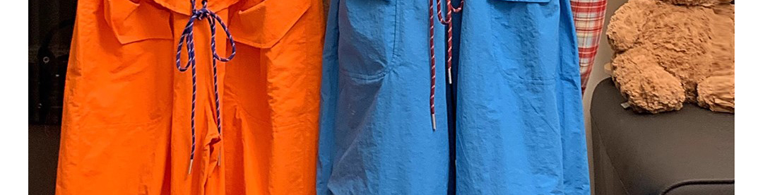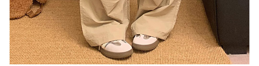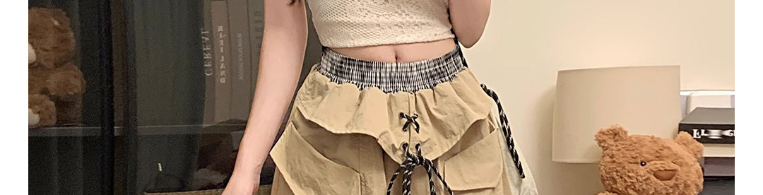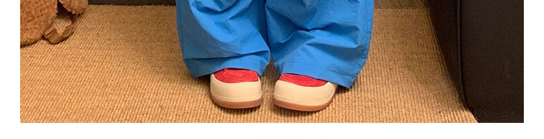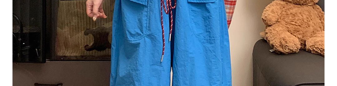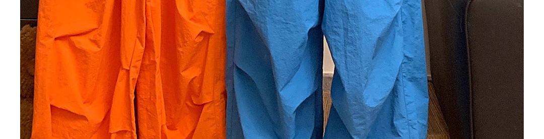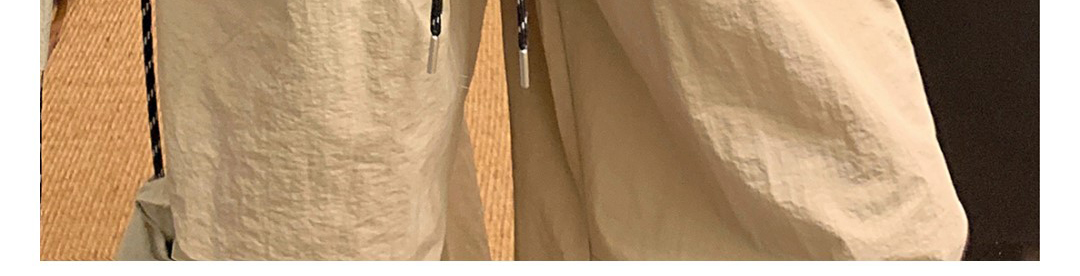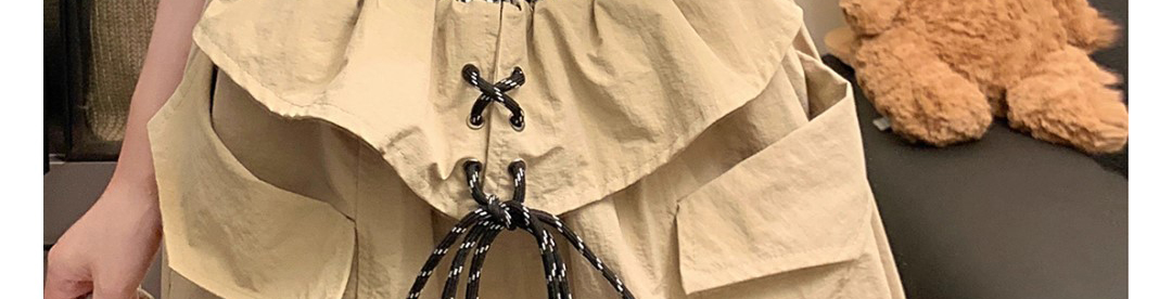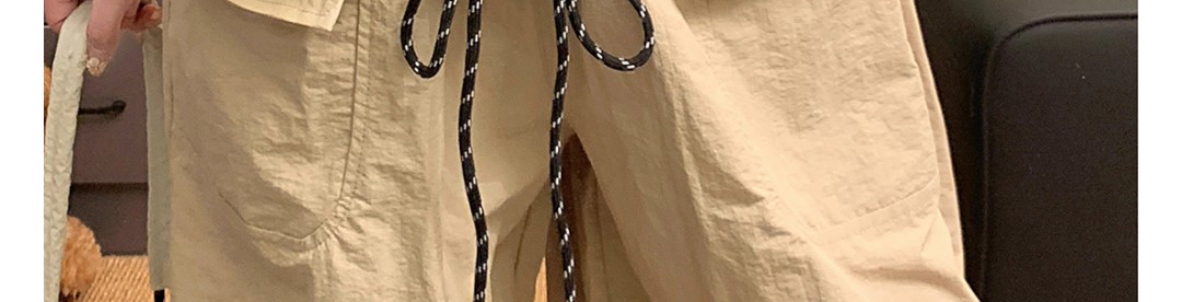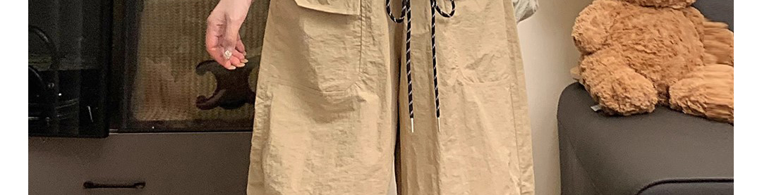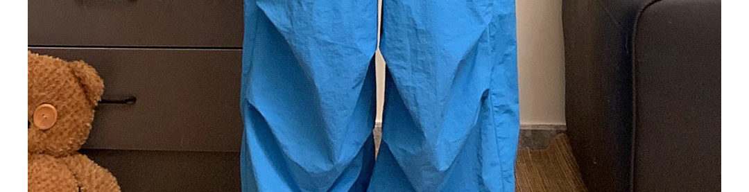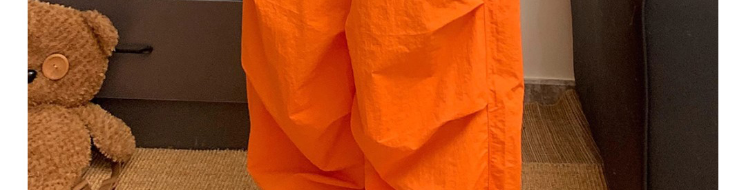 - Bottom: Wide-leg pleated cargo pants with curved hem, loose fit, retro American workwear style.