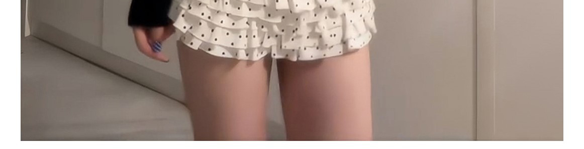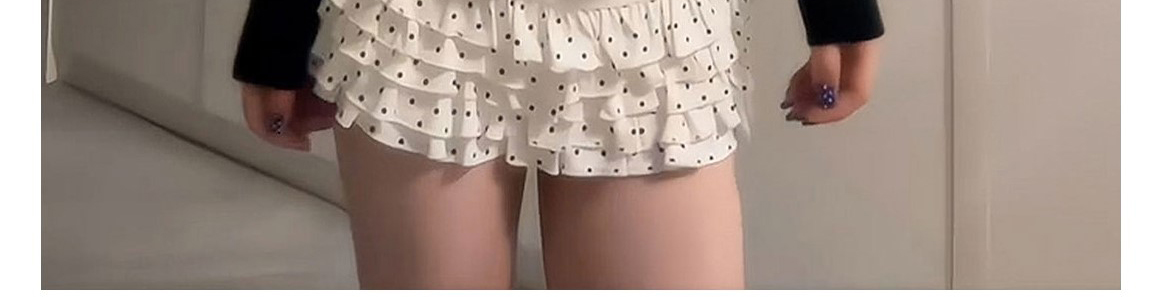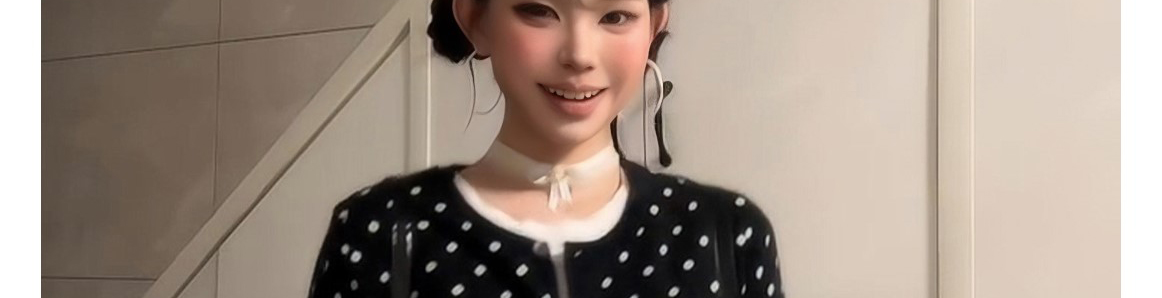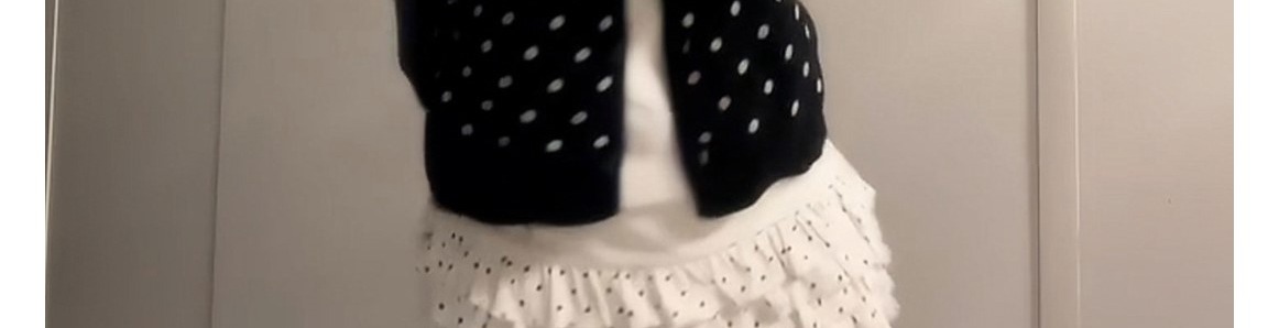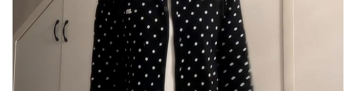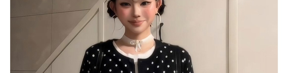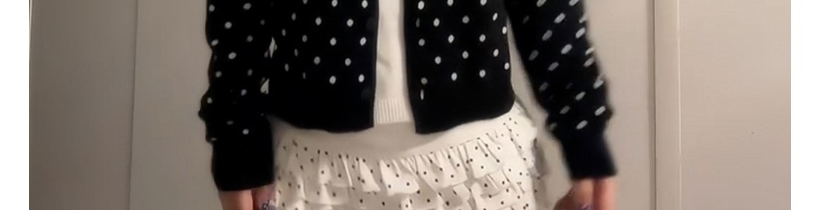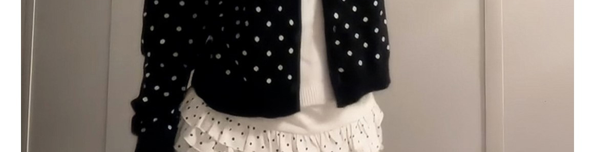 - Top: Polka dot knit cardigan with fake layered design.
