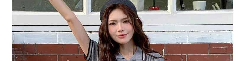American Polo Collar T-Shirt & Pleated Skirt Set