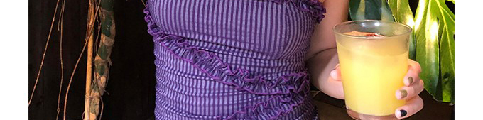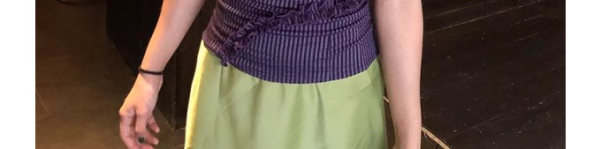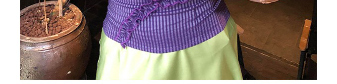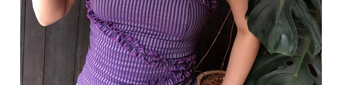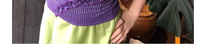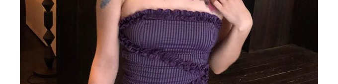 - Top: Purple lace cami with cross-back design, slim fit, perfect for edgy summer looks.