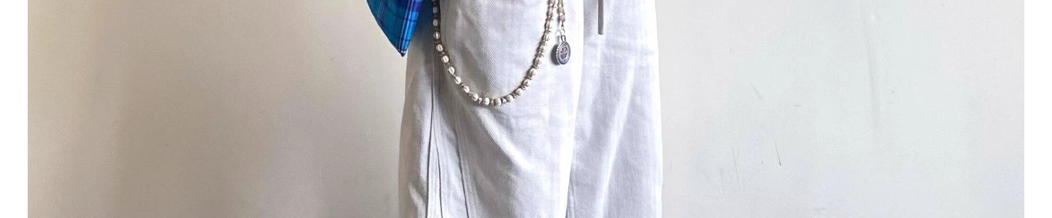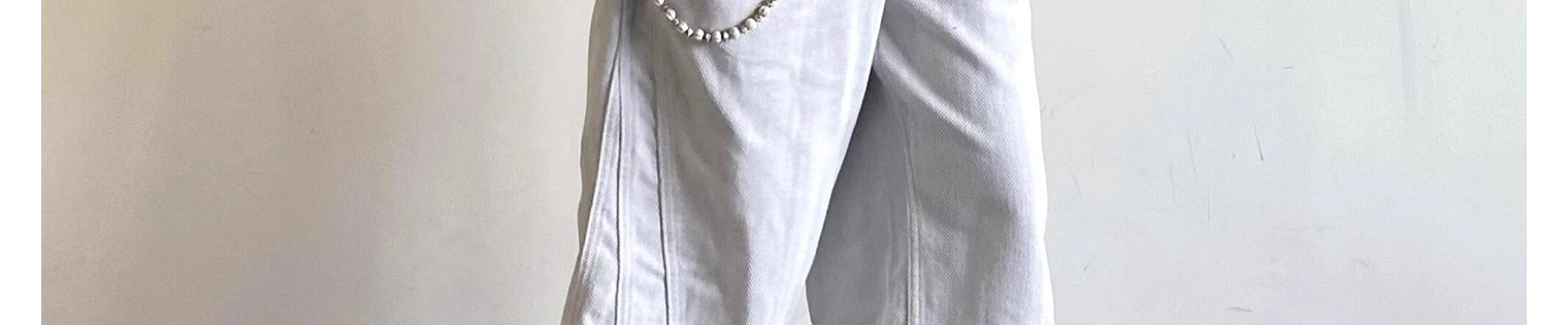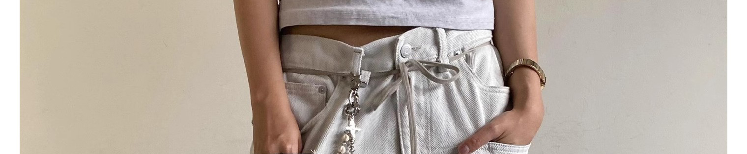 - Bottom: Cropped wide-leg denim pants, straight fit, retro American casual style.