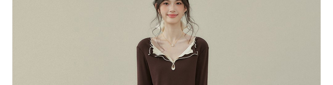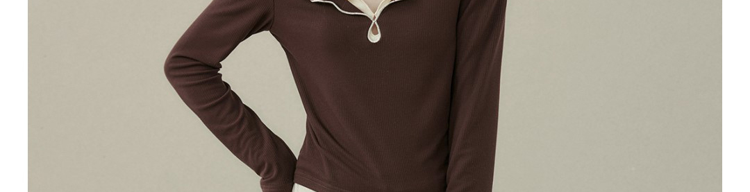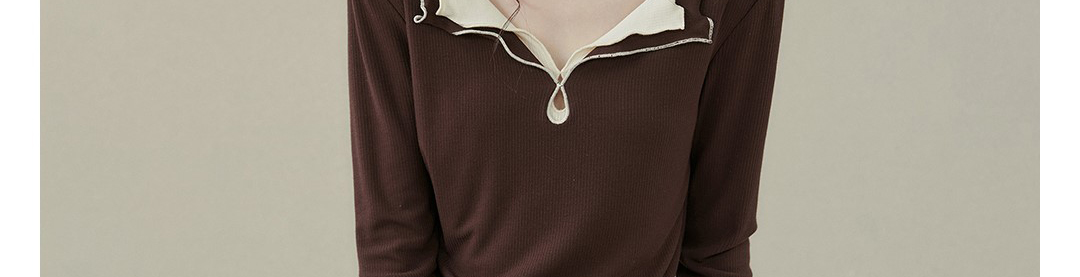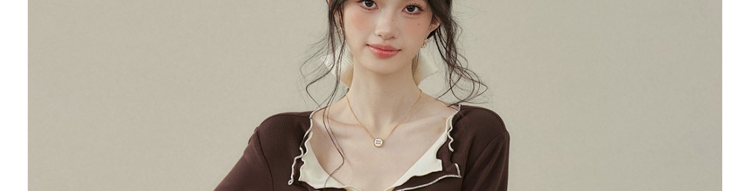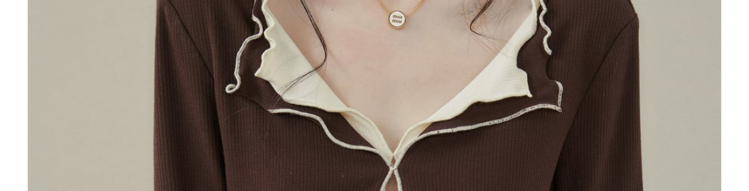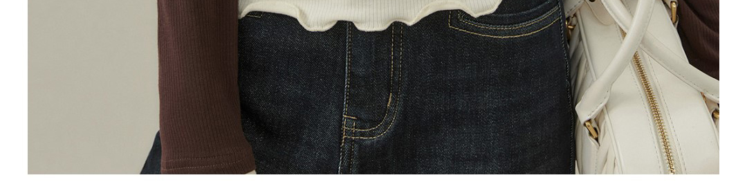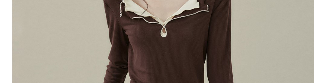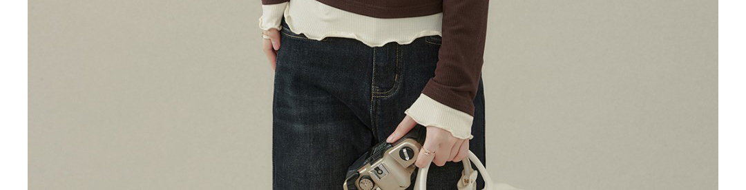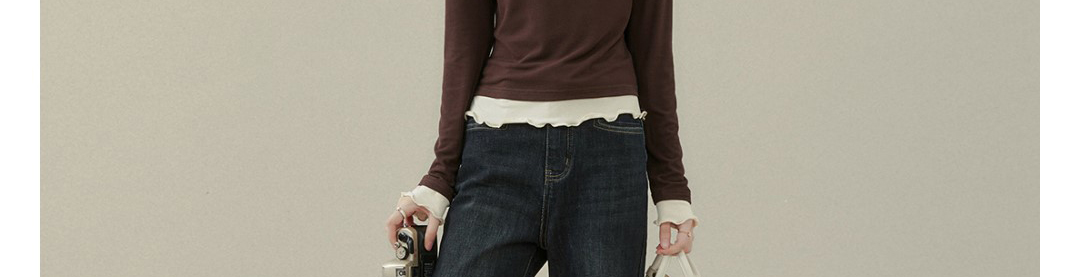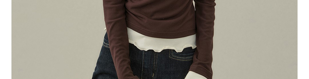 - Top: Fake two-piece long sleeve T-shirt with stitched contrast detail.