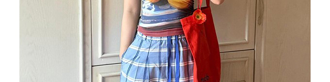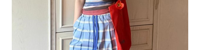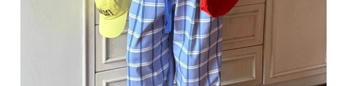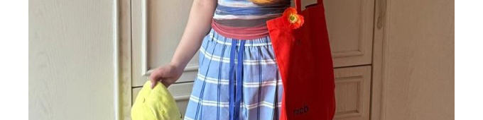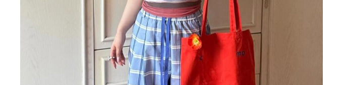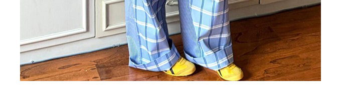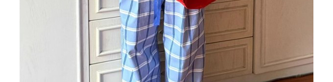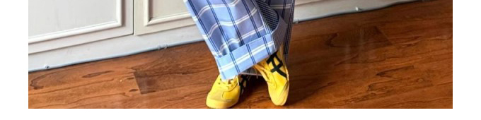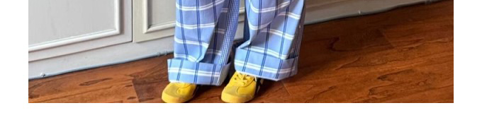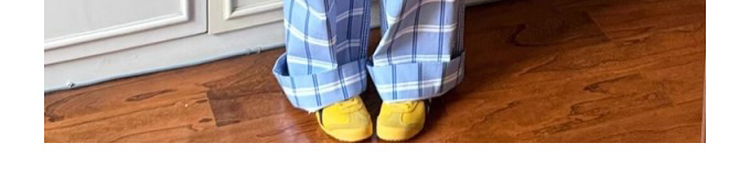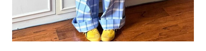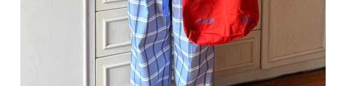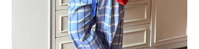 - Bottom: Retro plaid patchwork straight wide-leg pants with adjustable drawstring and soft drape.