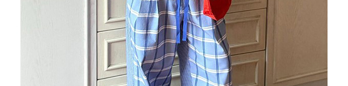American Retro Plaid Patchwork Drawstring Wide-Leg Pants