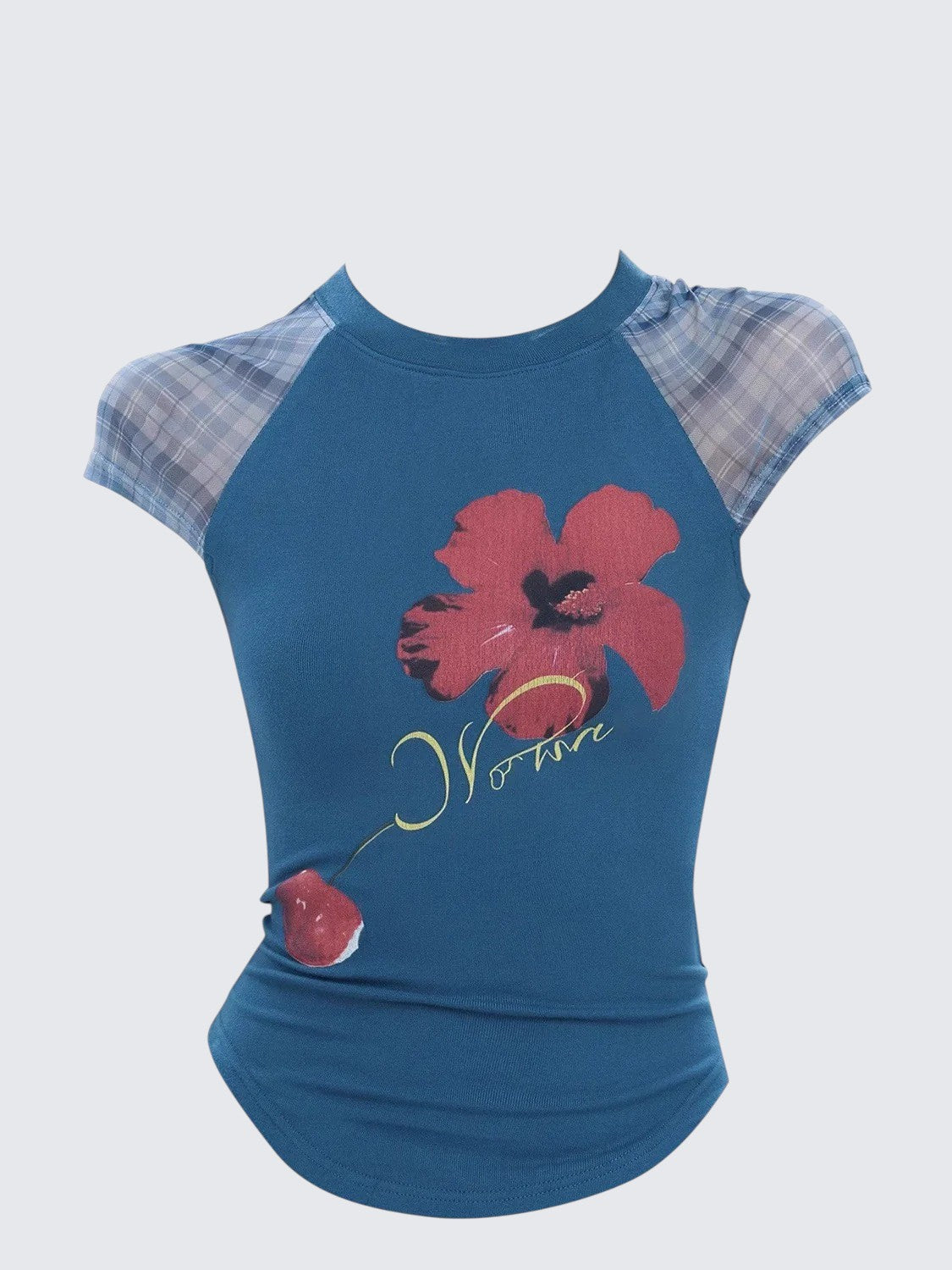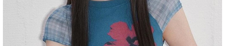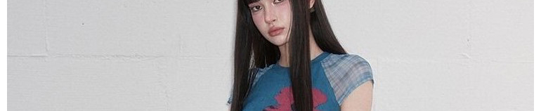 - Top: Slim-fit short sleeve tee with mesh patchwork and straight shoulder design, soft summer fabric.
