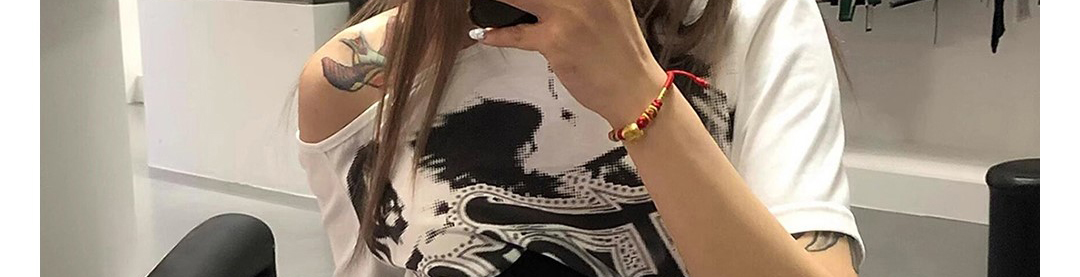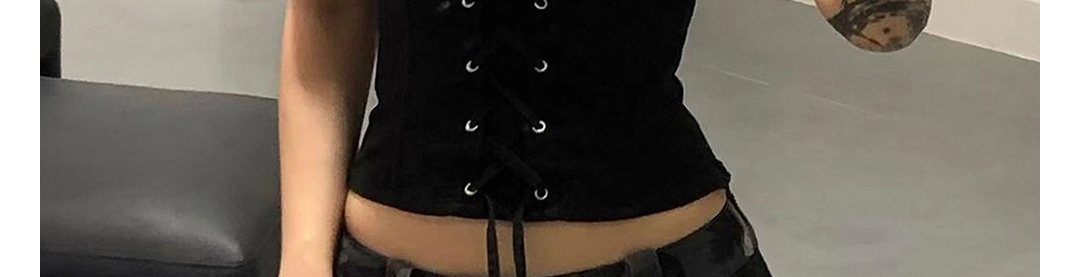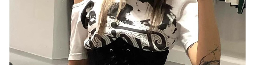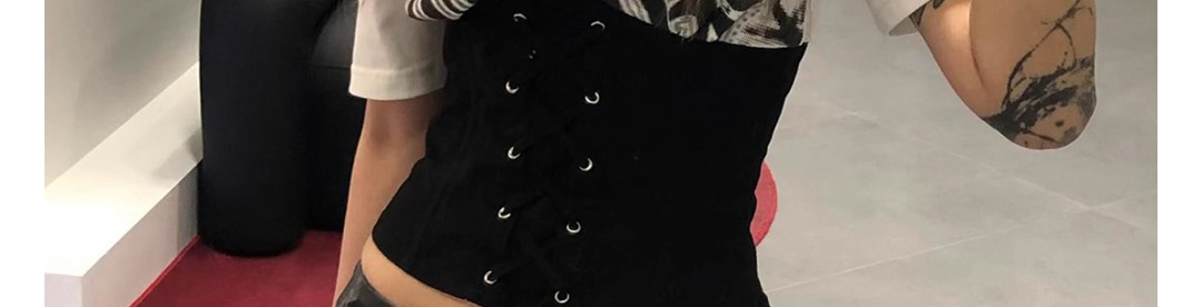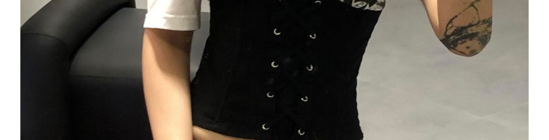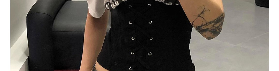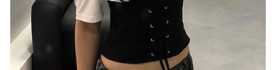 American Shoulder Tie Waist Colorblock T-Shirt