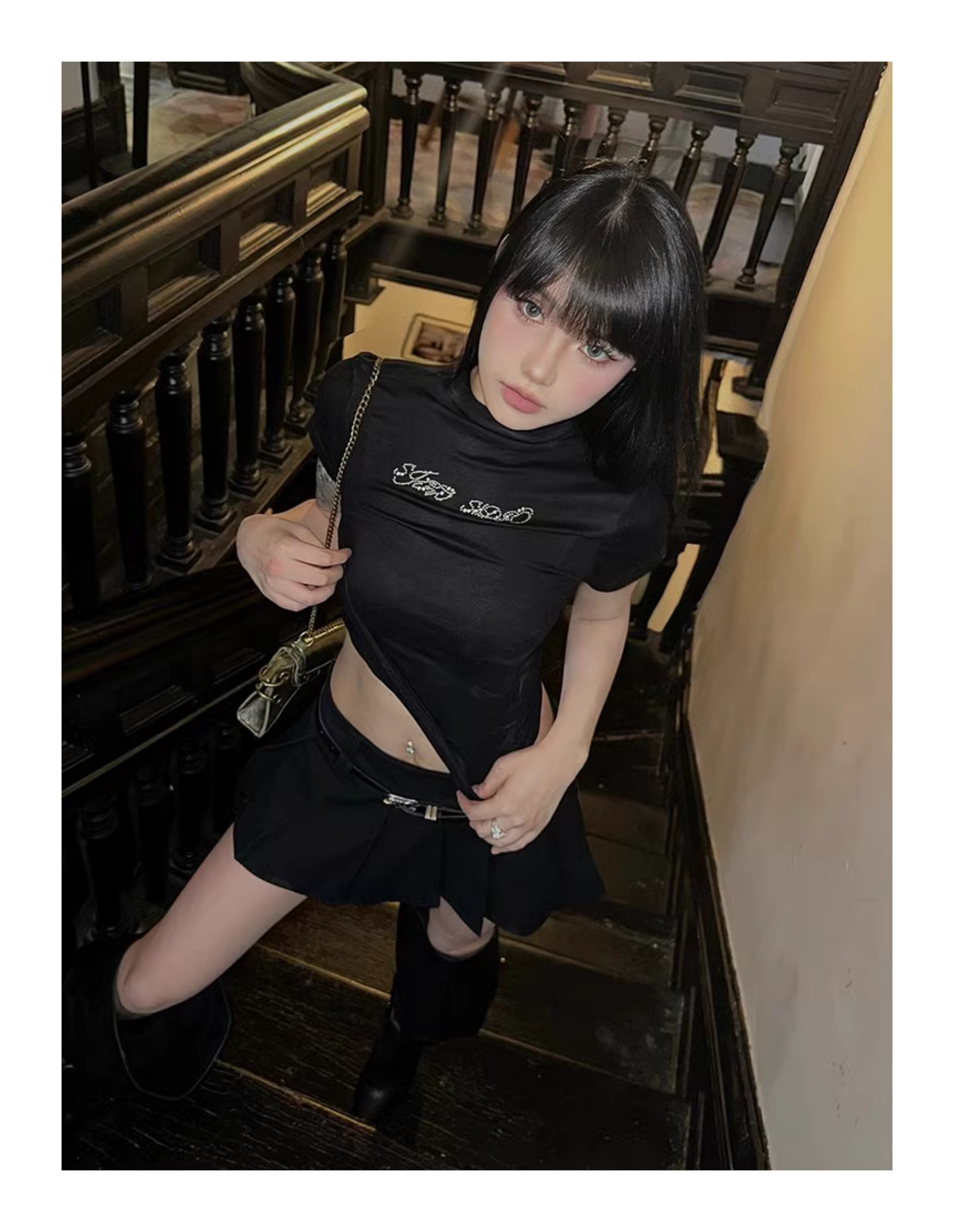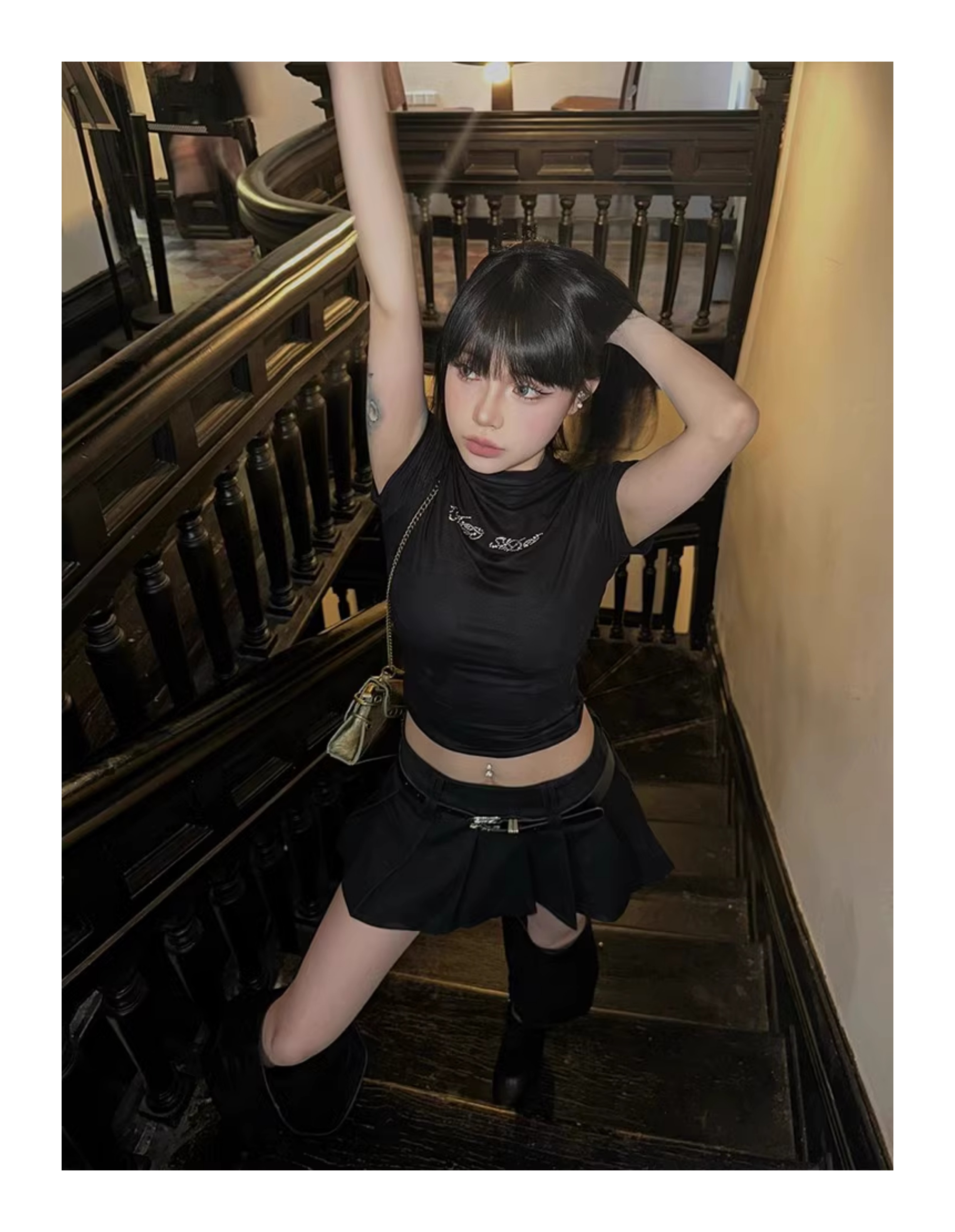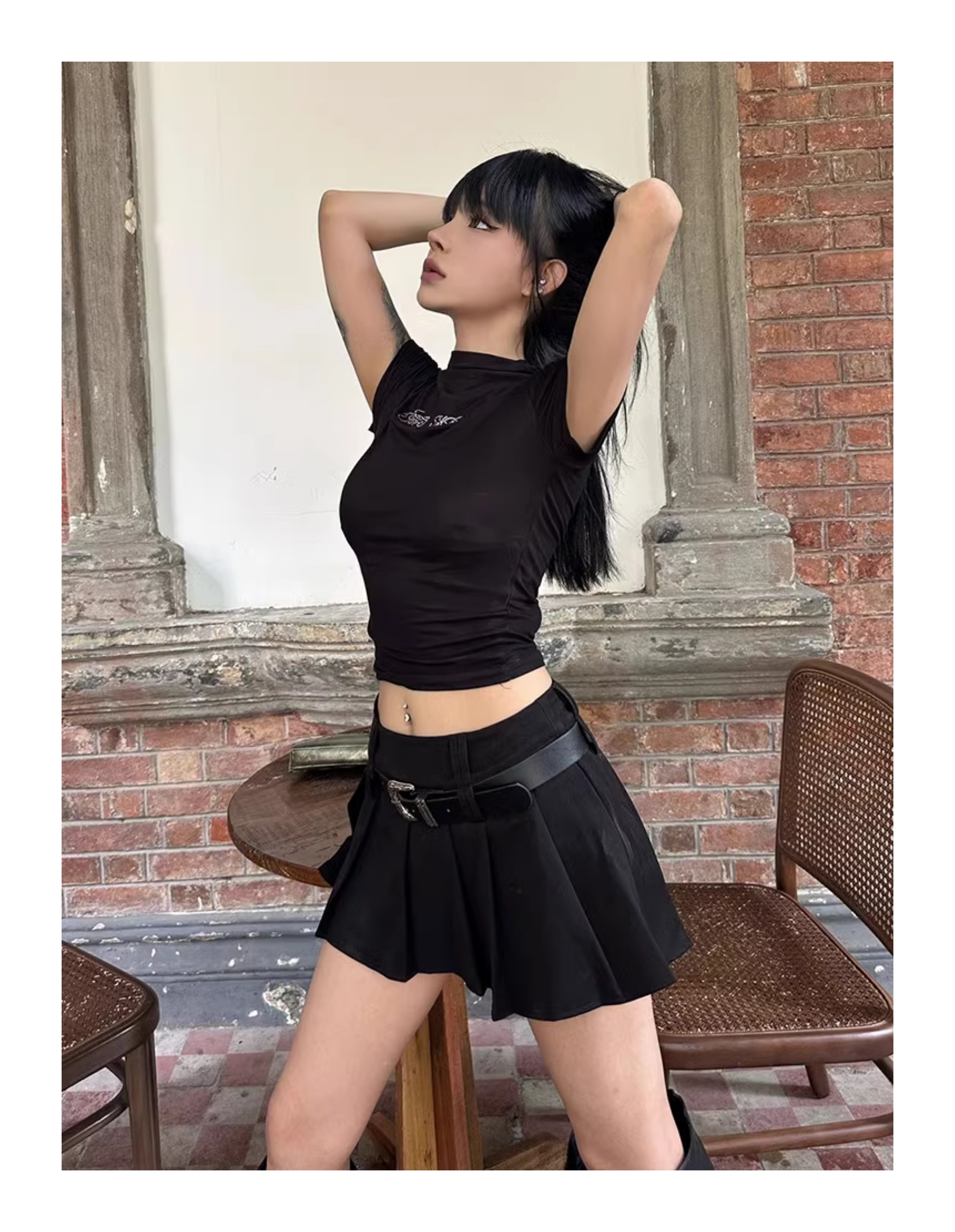 American Slim Straight Shoulder Letter Rhinestone T-Shirt