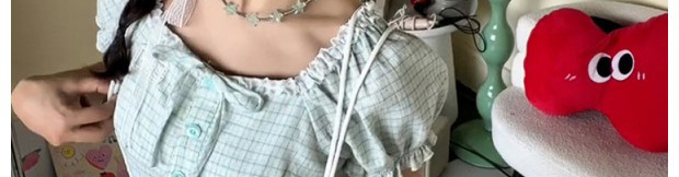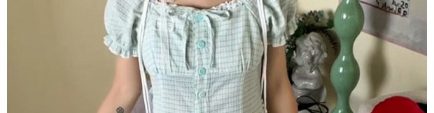 American Vintage Green Plaid Puff Sleeve Square Neck Shirt