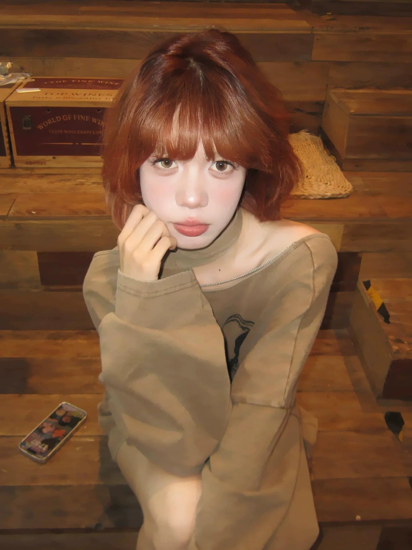 - Top: Autumn long sleeve tee with vintage washed fabric, ribbon details, portrait print, backless design, Y2K retro aesthetic.