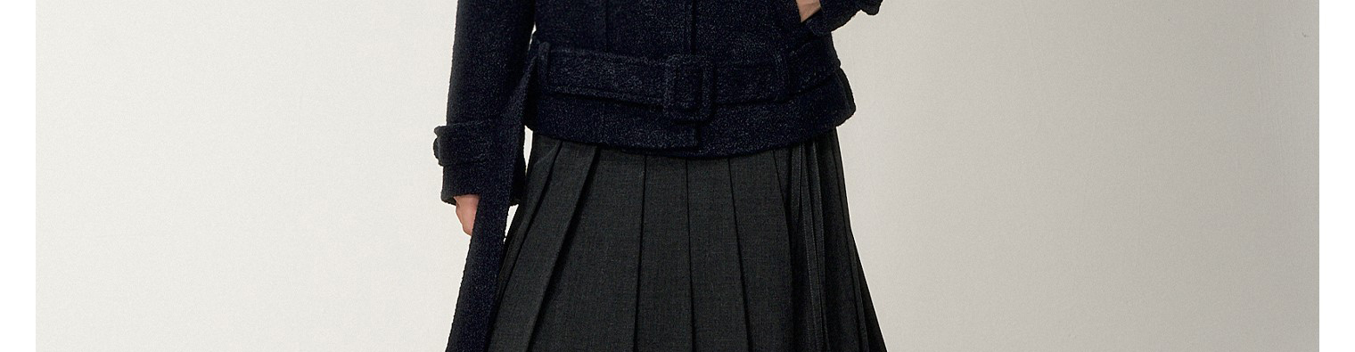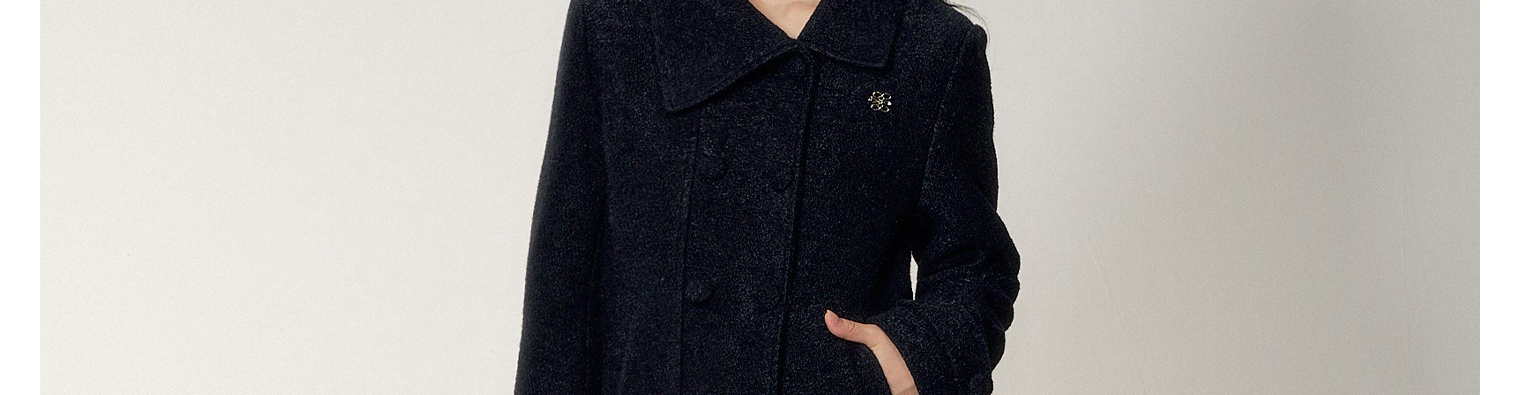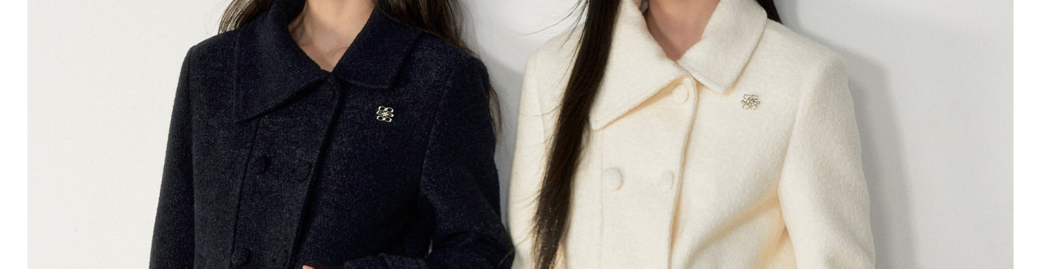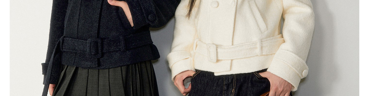 Korean-style wool jacket with asymmetric double-breast and fitted waist. Elegant and versatile for autumn and winter.