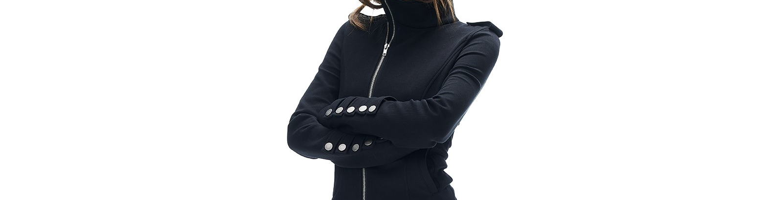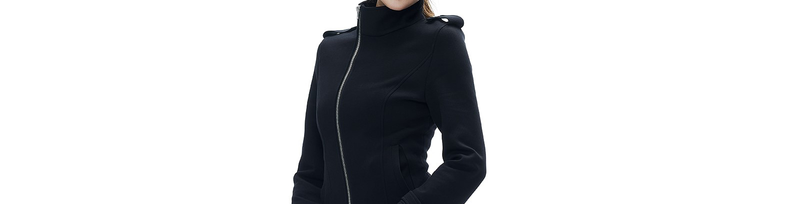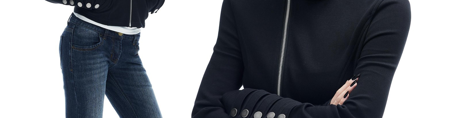- Top: Short hoodie with asymmetrical zipper and stand collar, slim-fit autumn fabric with stylish design.