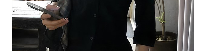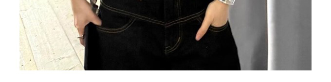 - Top: Black slim-fit 3/4 sleeve shirt with elegant French-inspired silhouette and cropped length.