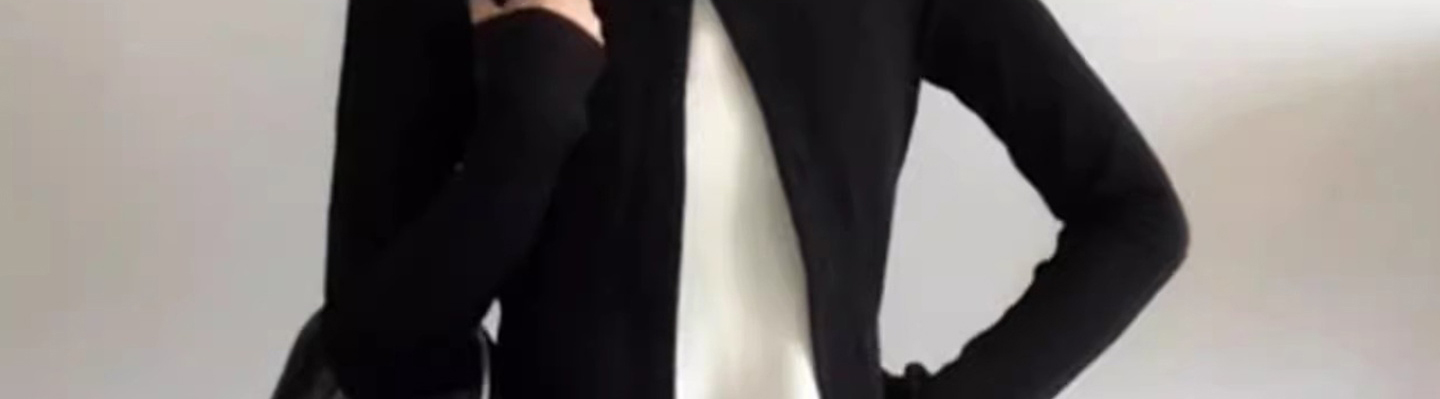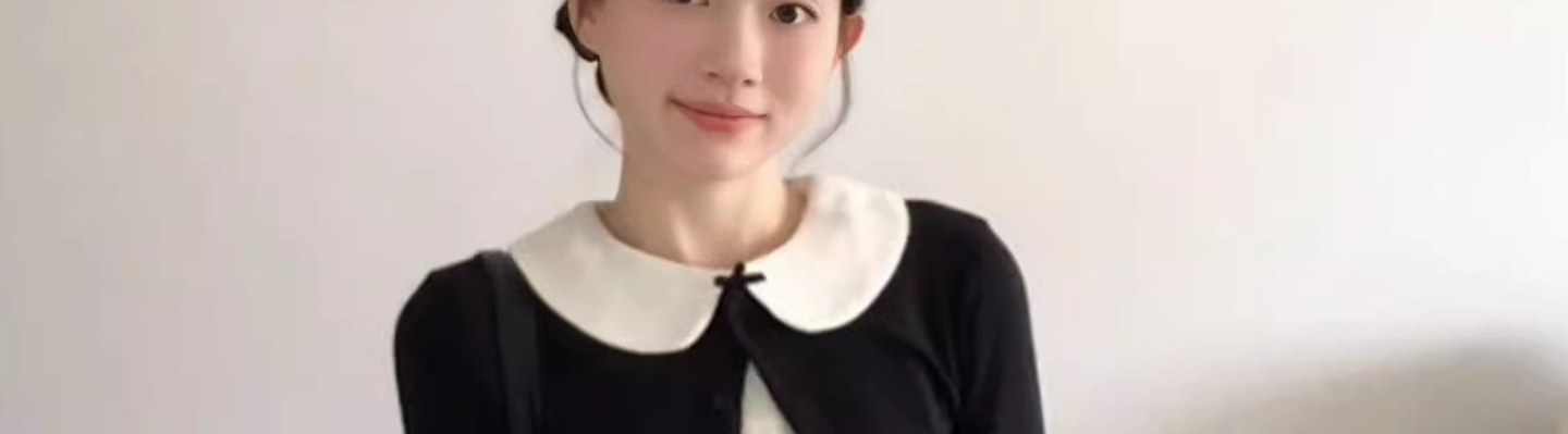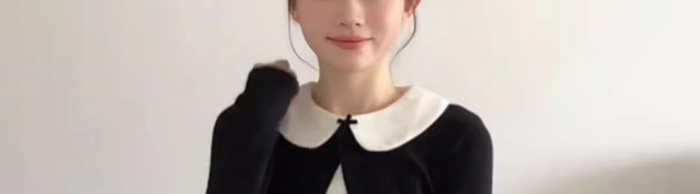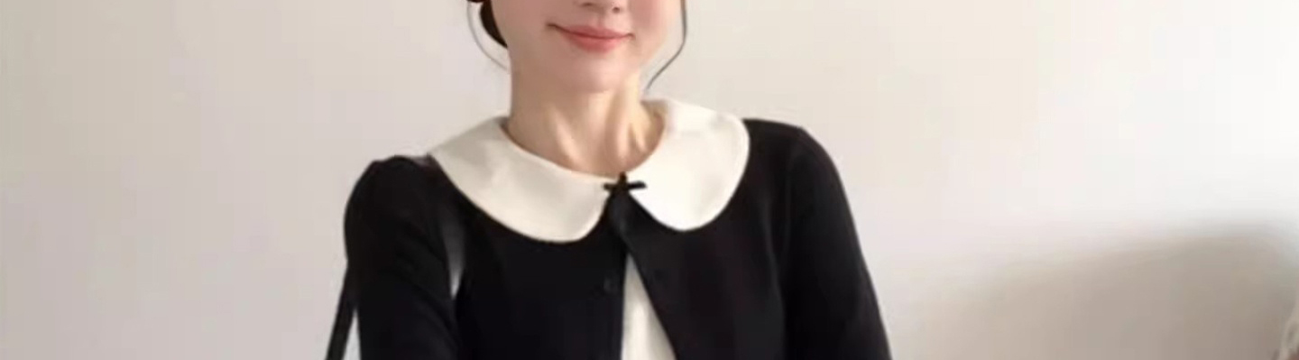 Thin black knit cardigan with bow and doll collar. Elegant and lightweight for early autumn layering.