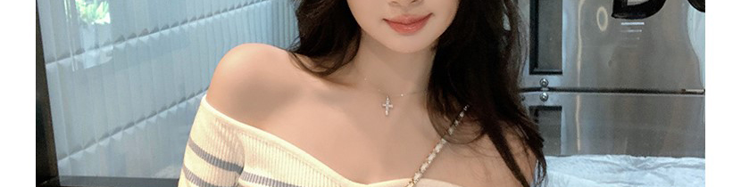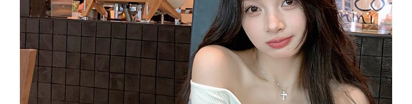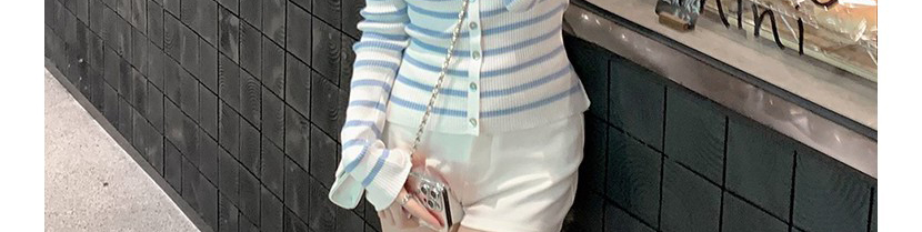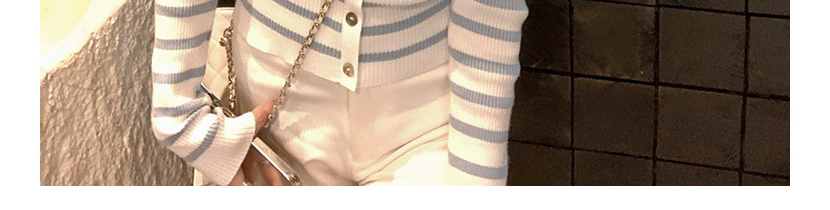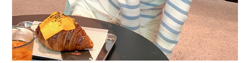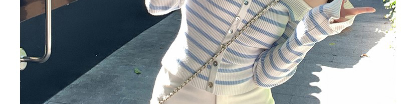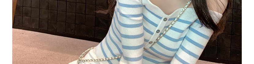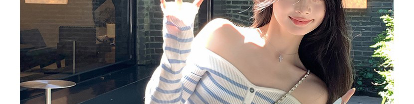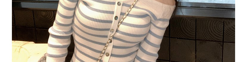 Korean-style off-shoulder blue striped knit. Cropped, slim-fit, and pure yet sensual — perfect for fall.