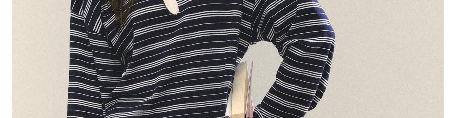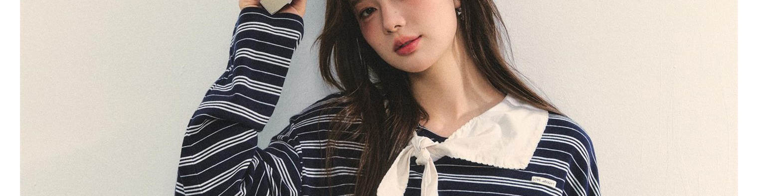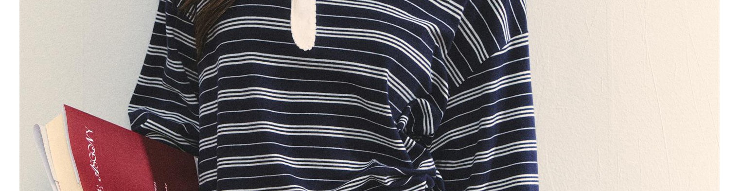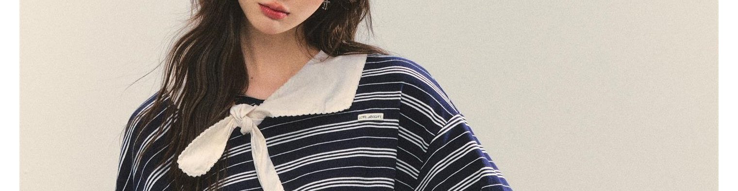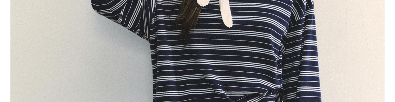 Striped long sleeve tee with bow-tie detail. Unique and stylish, casual autumn wear.