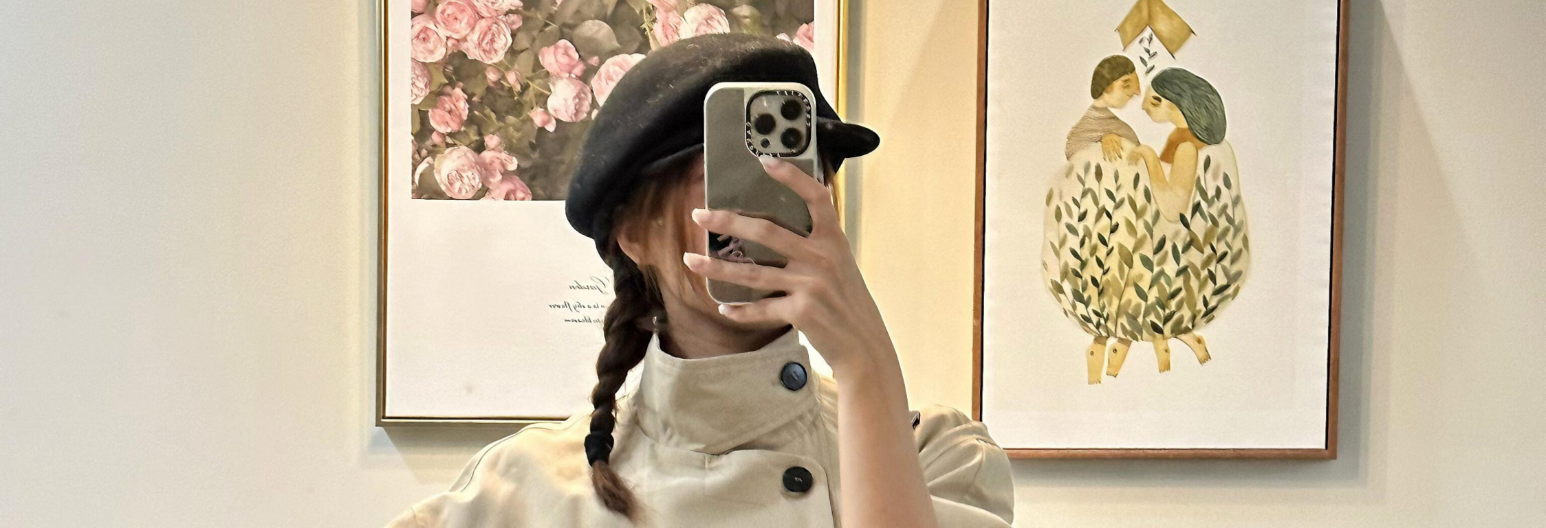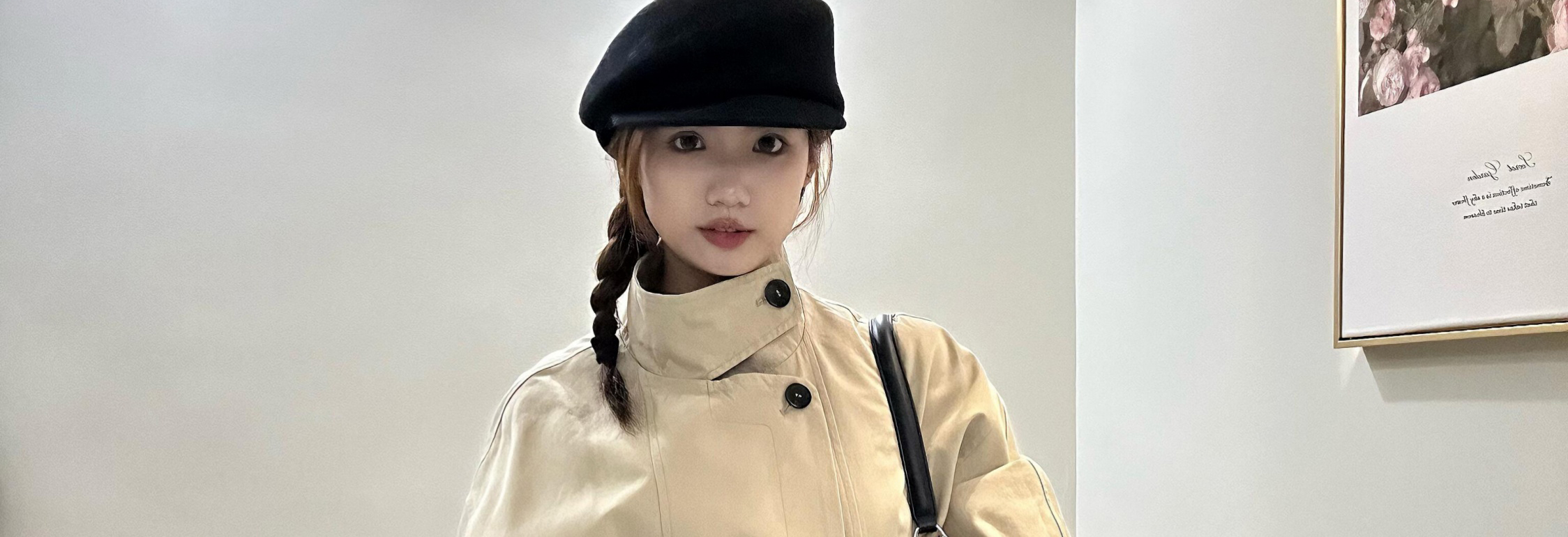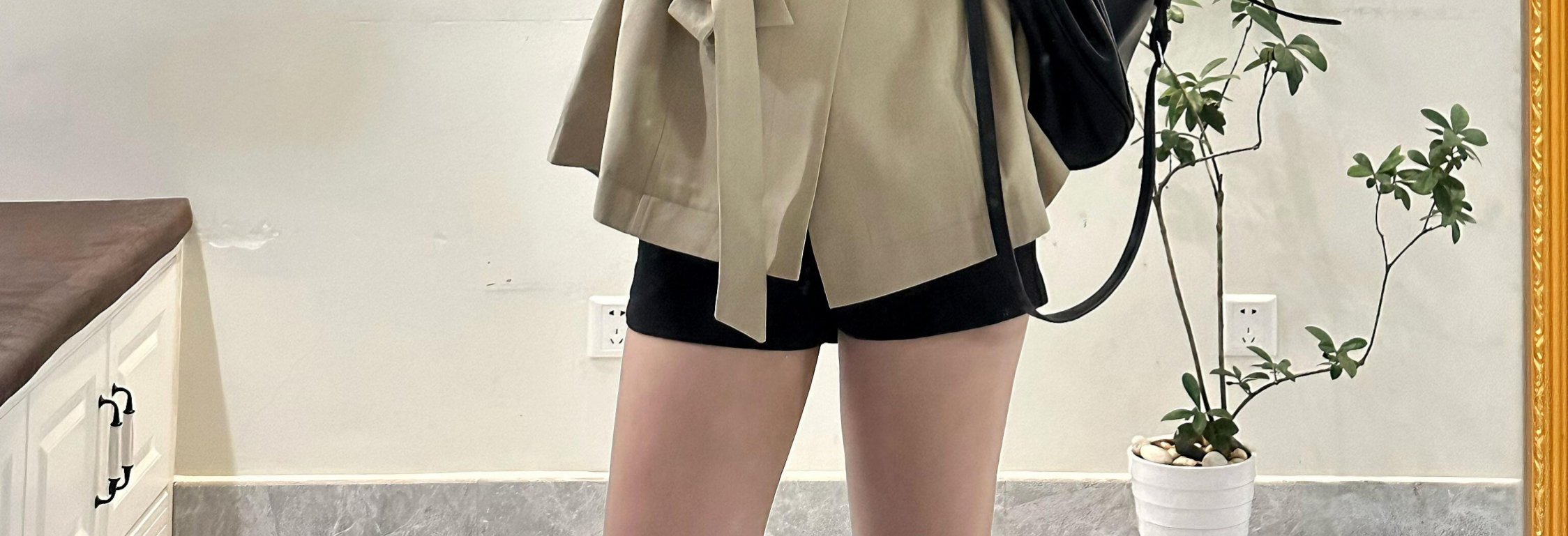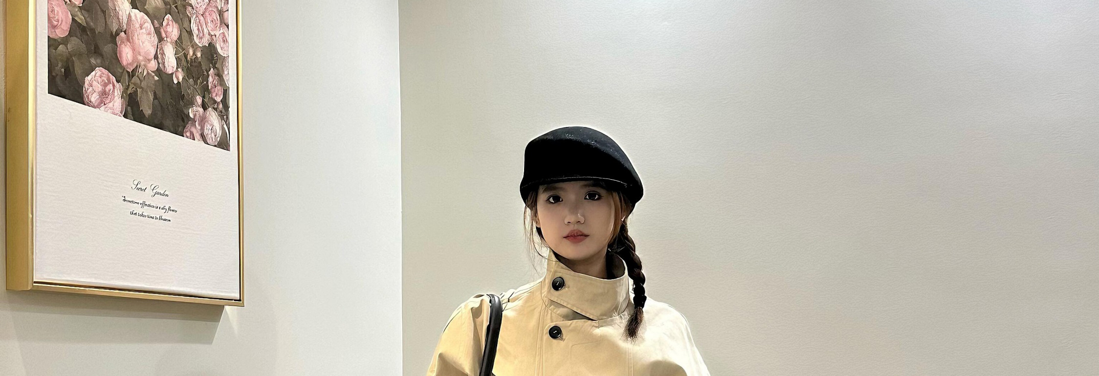 Elegant short trench coat with belted waist and stand collar. British-inspired design perfect for petite autumn looks.