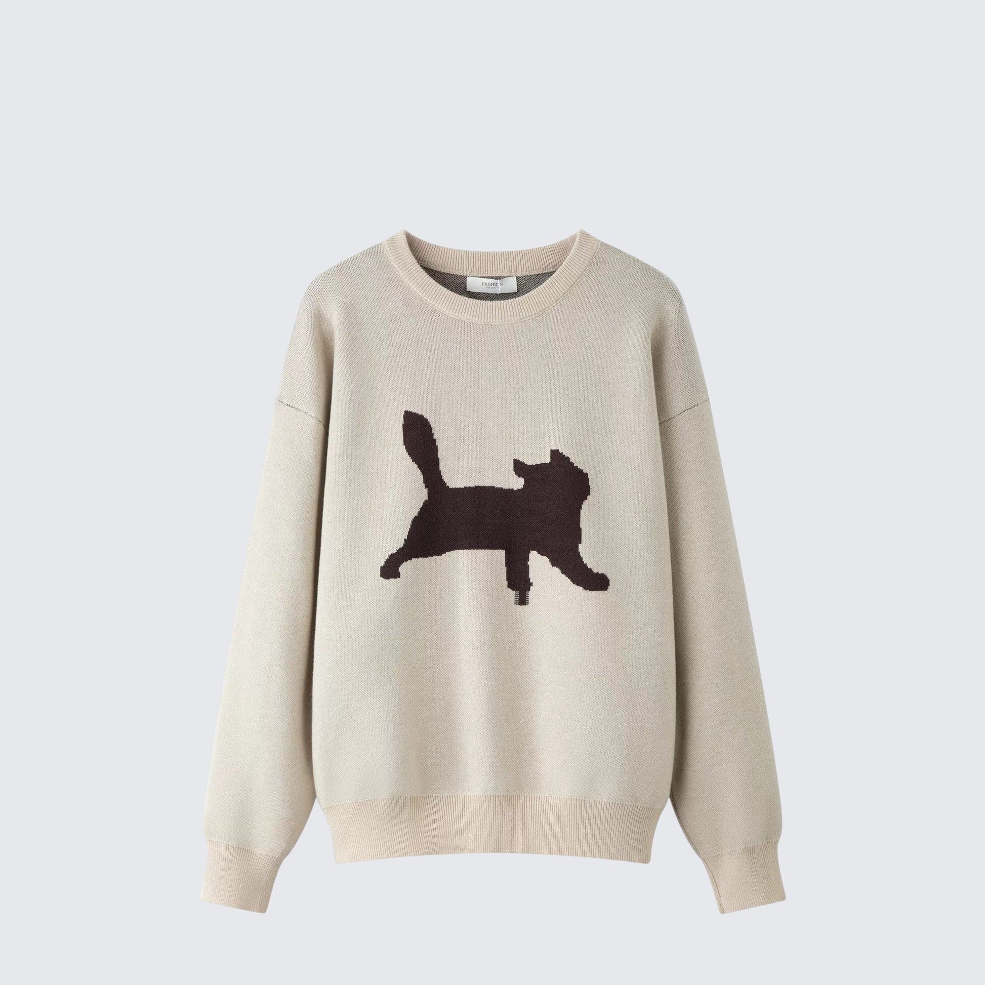 - Sweater: Cute jacquard knit sweater featuring cat motifs, soft and cozy unisex fit.