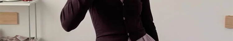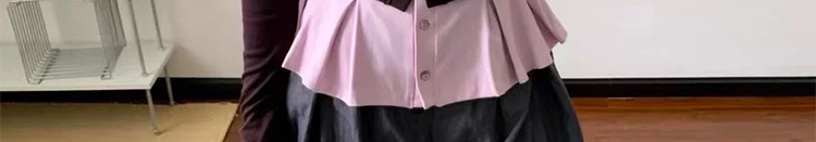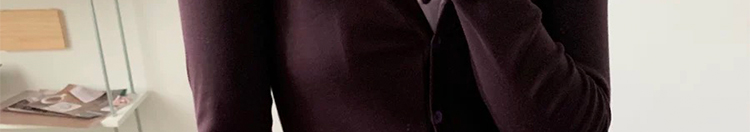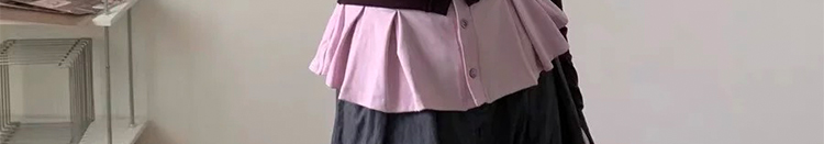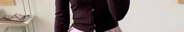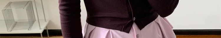 - Top: Knit cardigan with colorblock design and ruffle A-line hem, slim-fit two-piece look for autumn.