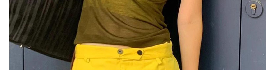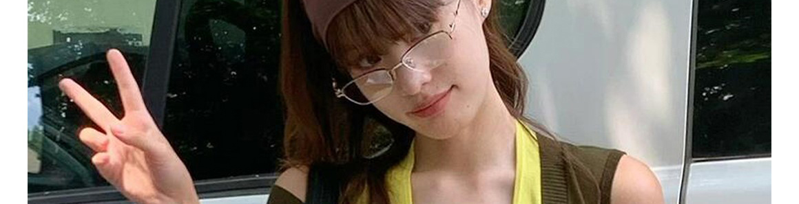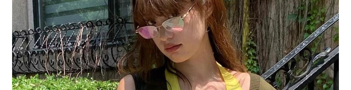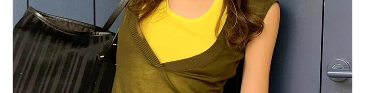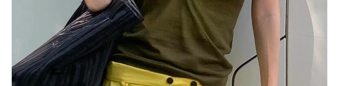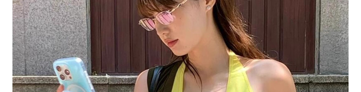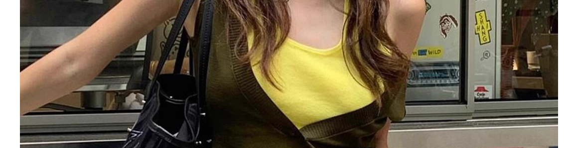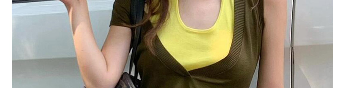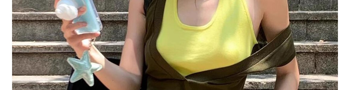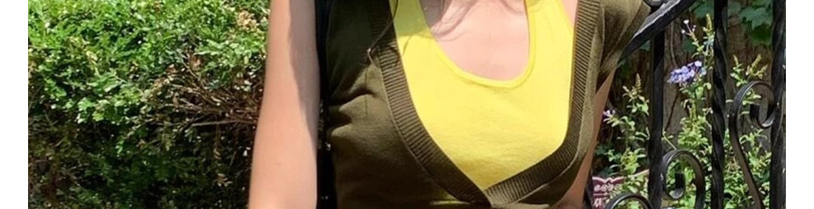 - Top: Sleeveless halter top with color-block design, slim fit, breathable knit fabric.