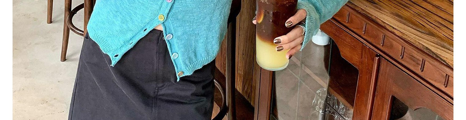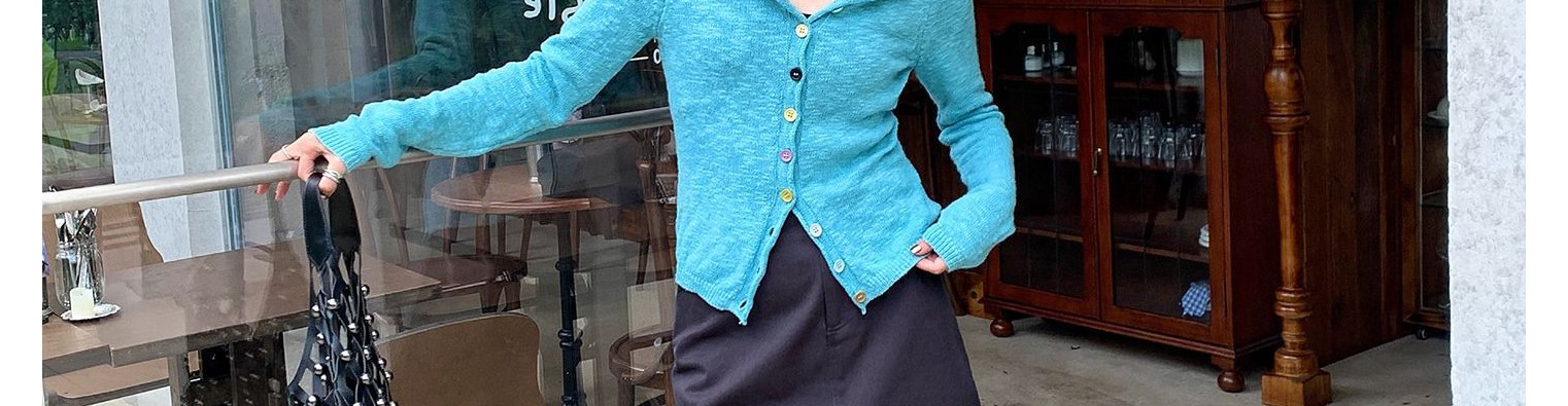 - Cardigan: Slim-fit knit cardigan with rainbow button details, soft and lightweight for early autumn.