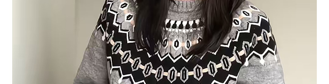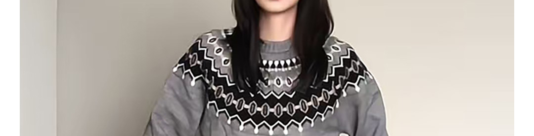 Soft round-neck knit sweater. Loose fit, elegant and cozy for autumn casual wear.