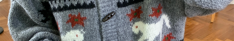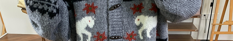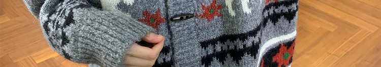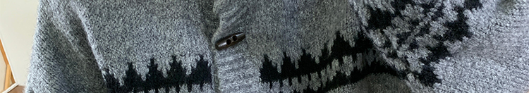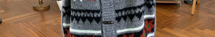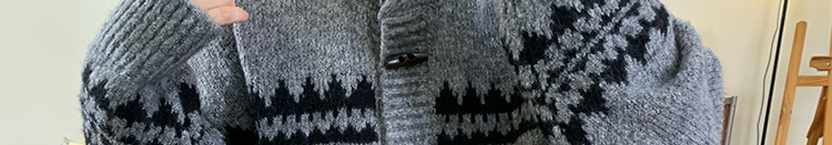 Jacquard knit cardigan with toggle buttons. Loose fit, cozy and stylish for autumn and winter.