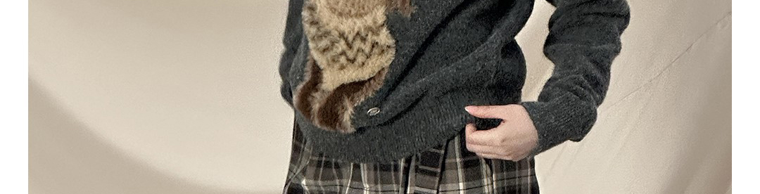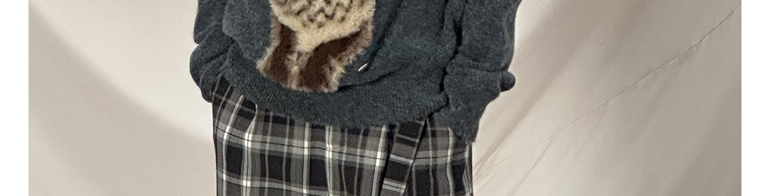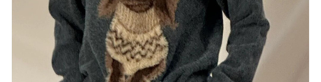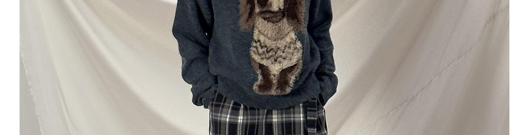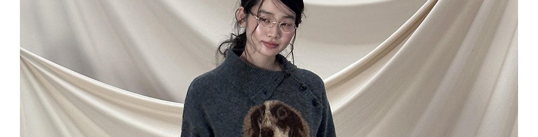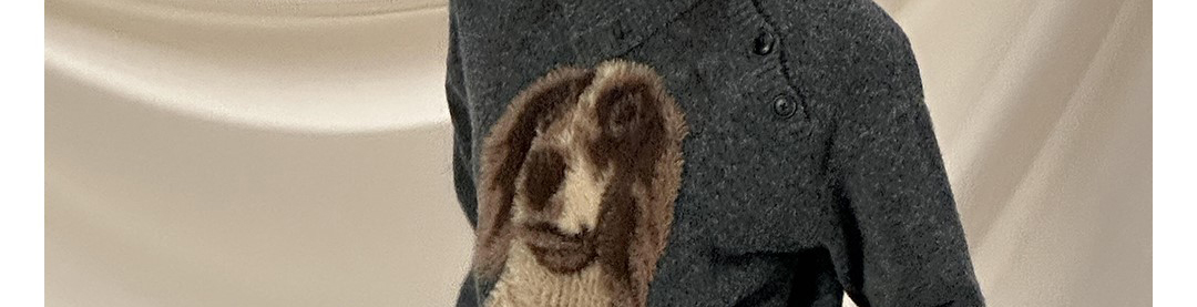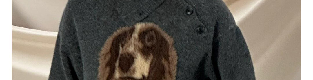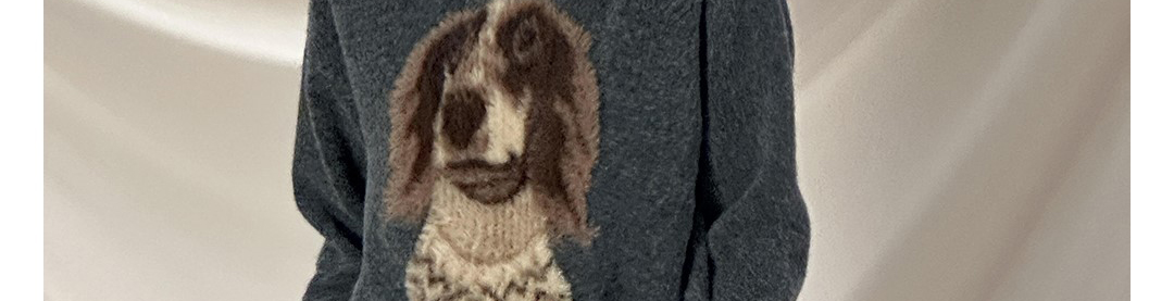 - Top: Pullover knit sweater with Fair Isle puppy jacquard pattern, soft cozy autumn fabric, relaxed fit.