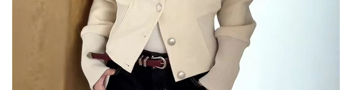 American retro stand collar jacket with fitted waist. Slimming, versatile for casual or office wear.
