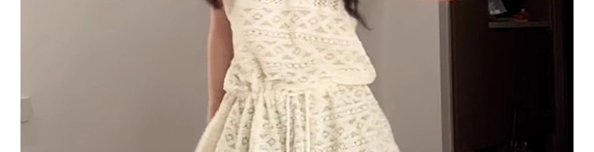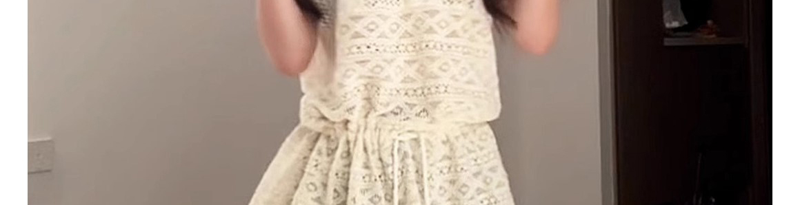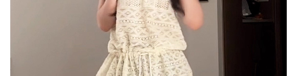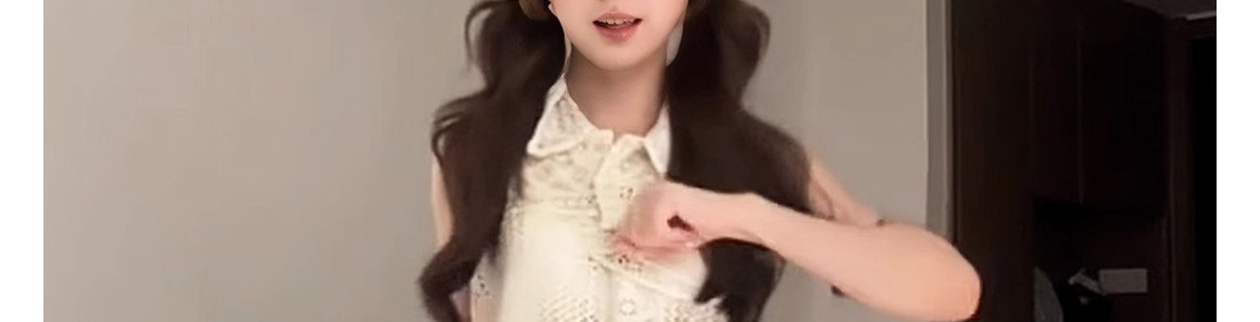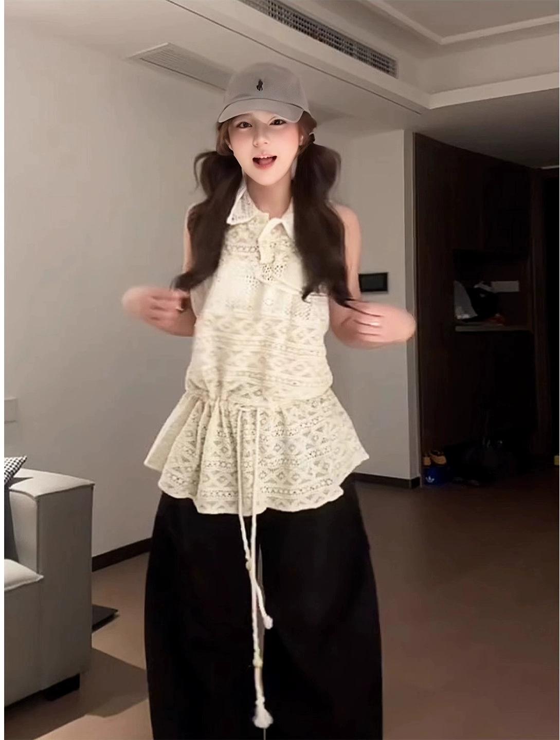 - Top: Sleeveless polo vest with hollow knit design and waist-defining cut, soft summer fabric.