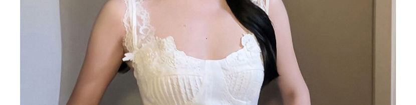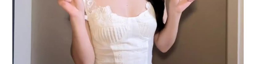 - Top: White lace camisole, sleeveless and slim fit, lightweight summer fabric for chic French style.