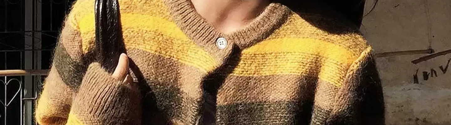 Short cardigan with gradient stripe pattern. Stylish and versatile for autumn casual wear.