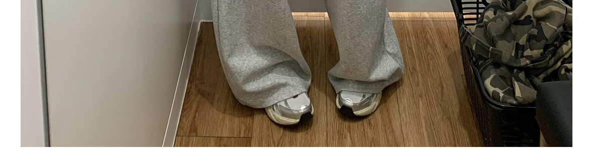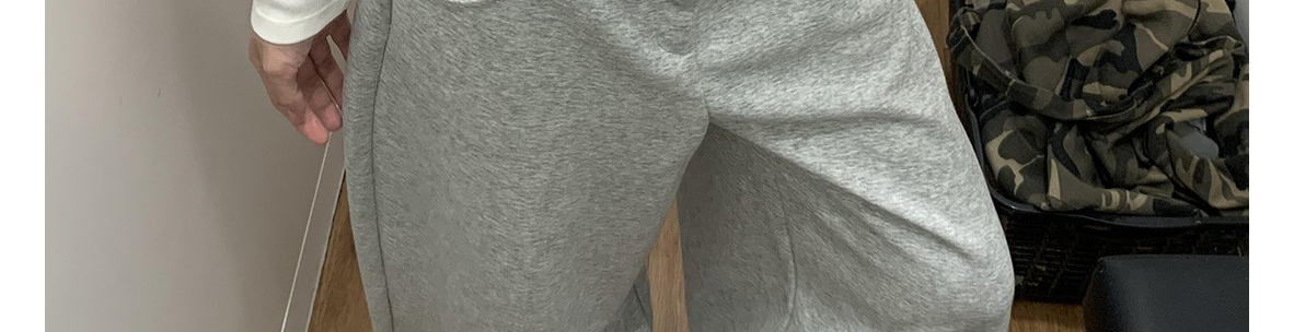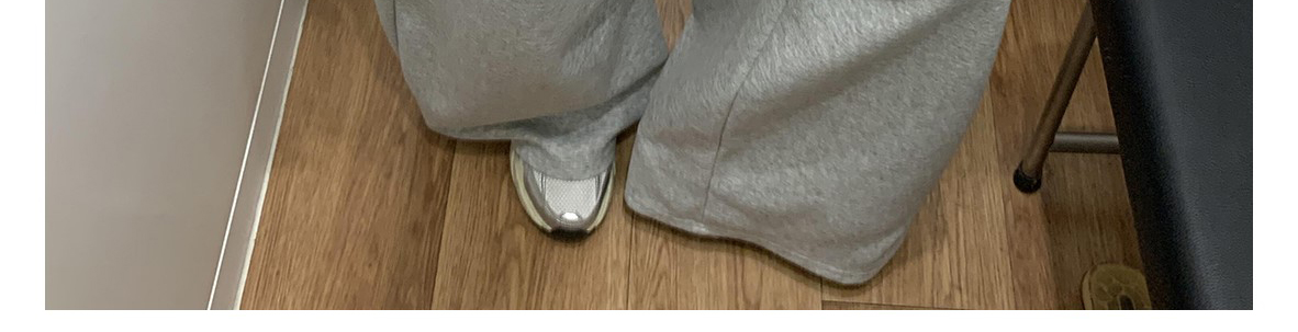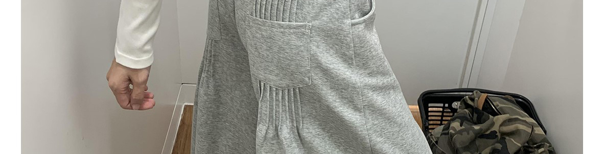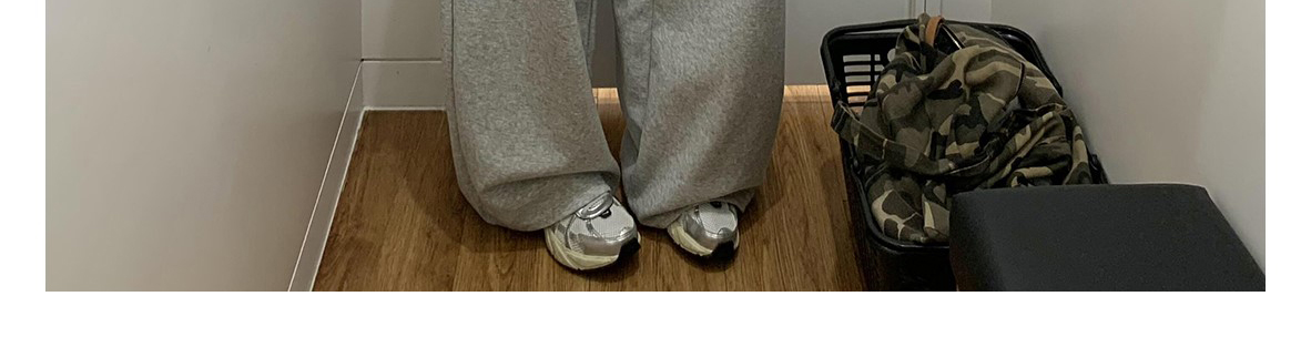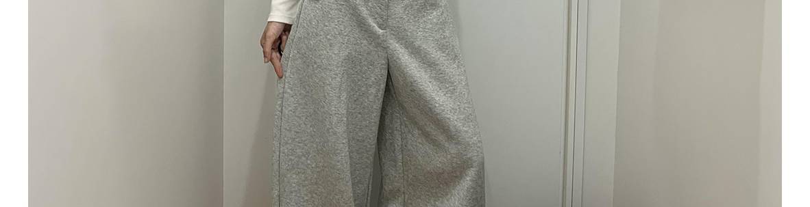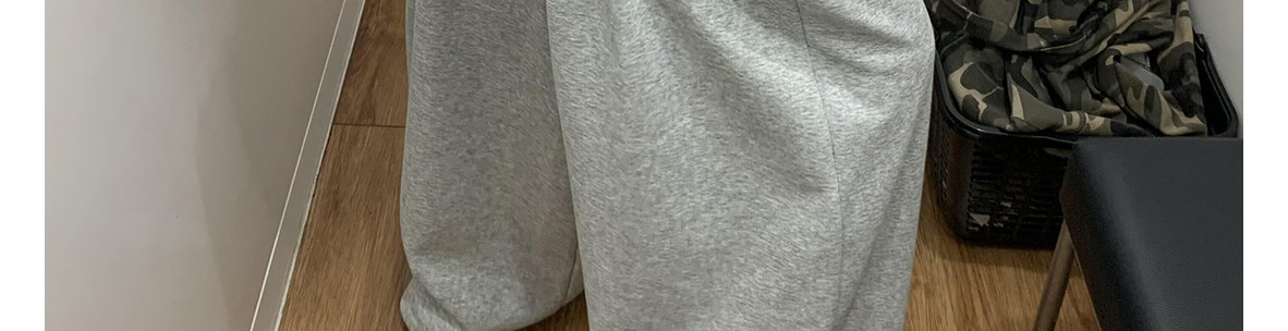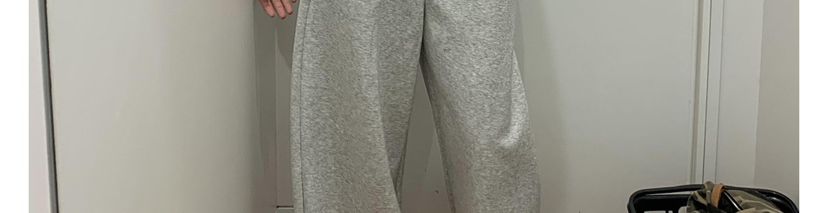 Gray curved casual pants. Loose fit, relaxed and comfy for autumn casual outfits.