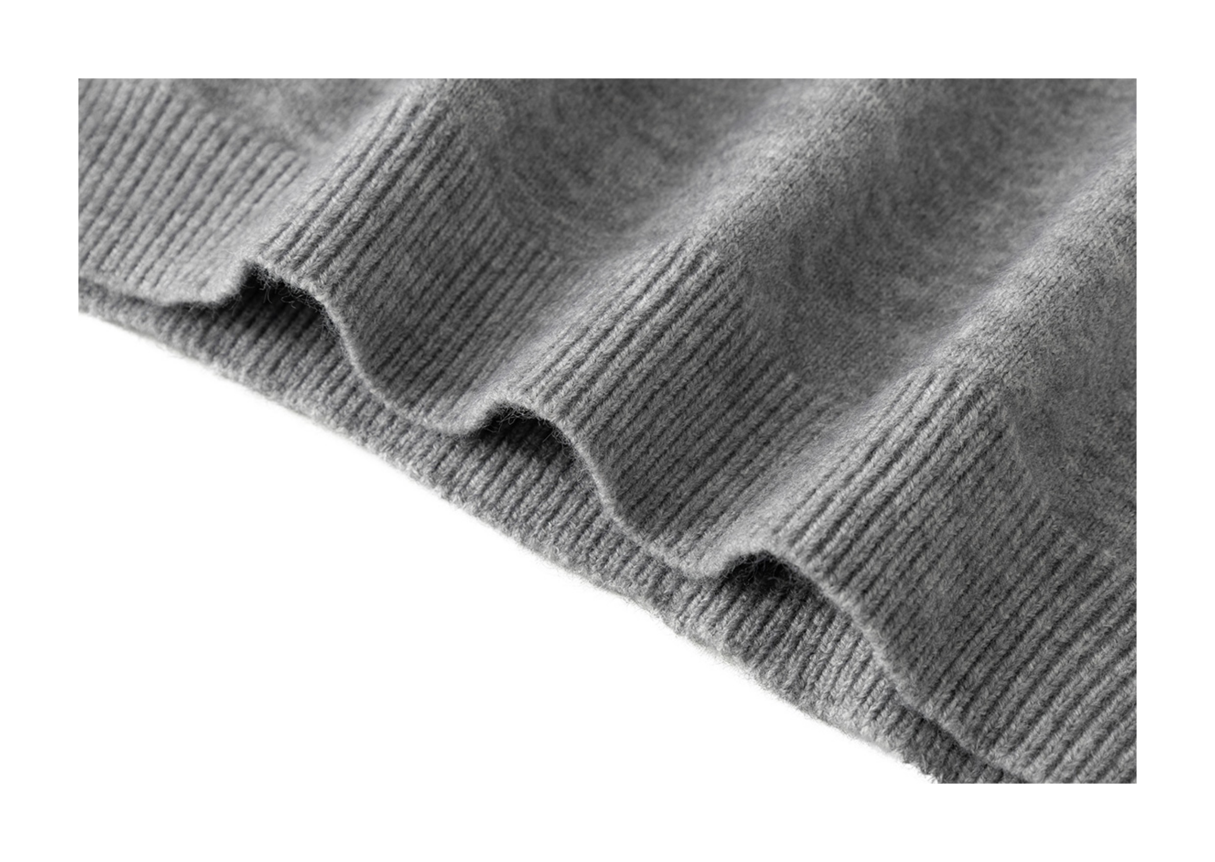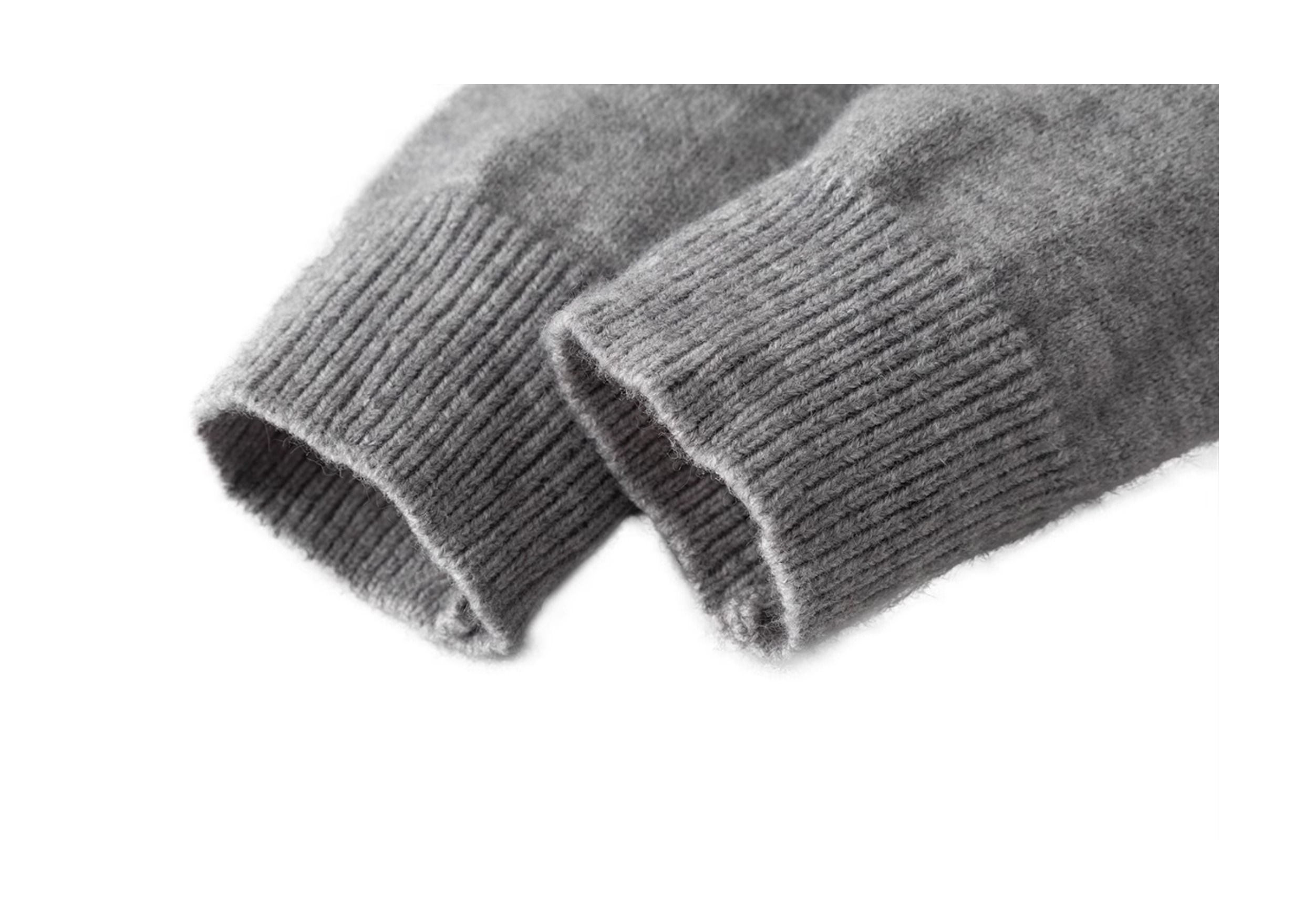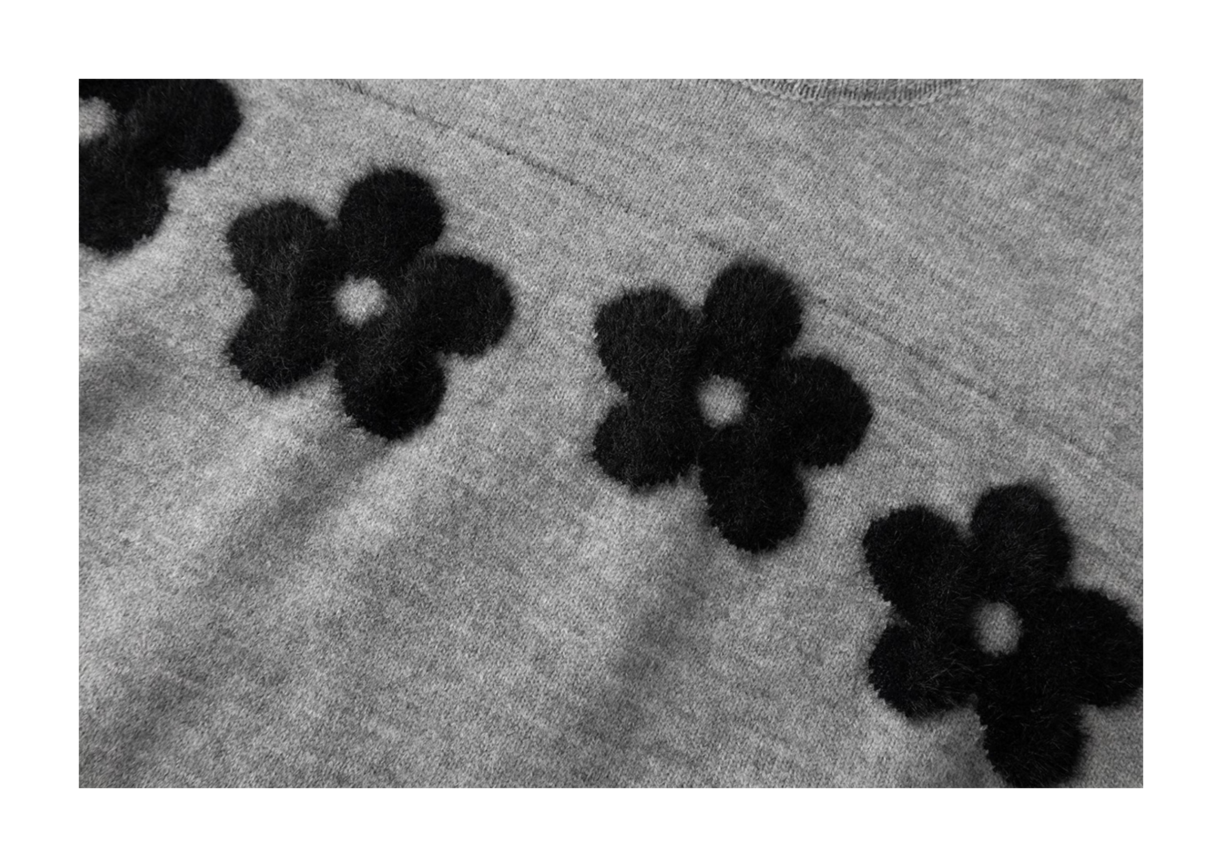Soft grey knit sweater with floral embroidery. Loose fit, high-end vintage aesthetic for autumn.