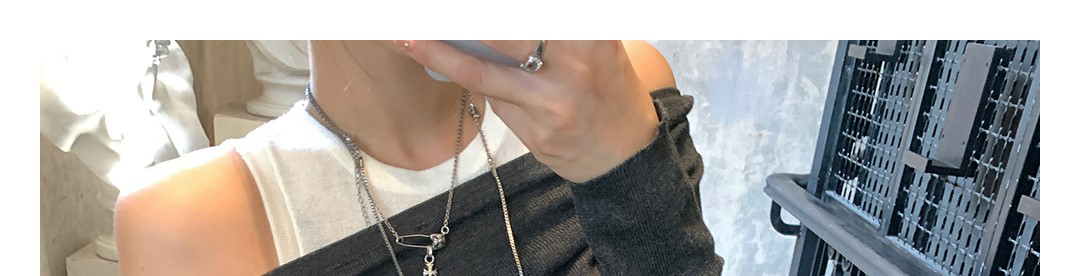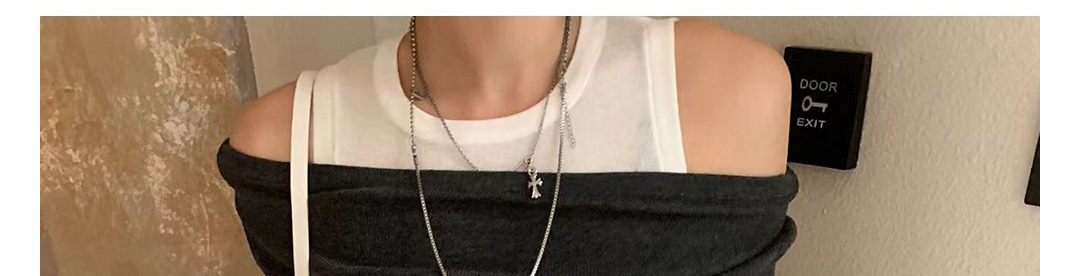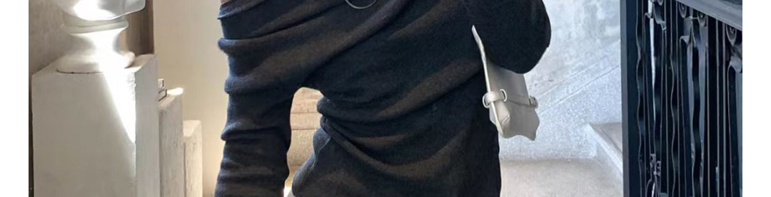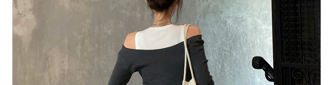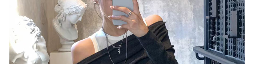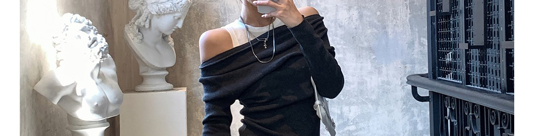 Trendy halter-style off-shoulder knit top with layered design. Slim fit and soft texture, perfect for lazy chic autumn outfits.