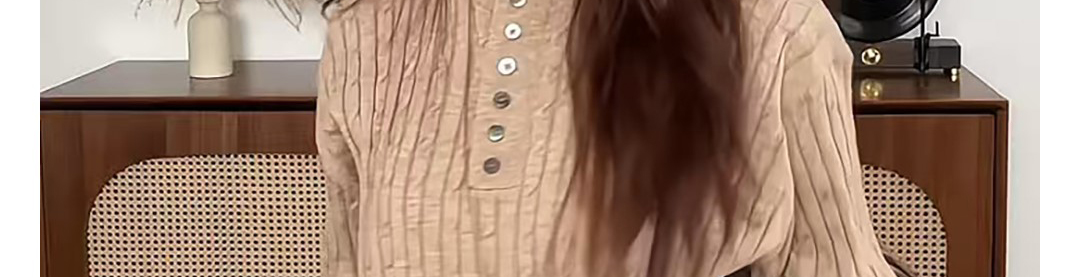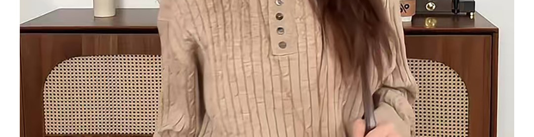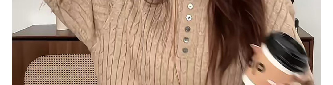 Cable knit Henley sweater with layered look. Loose fit, cozy and chic for autumn and winter.