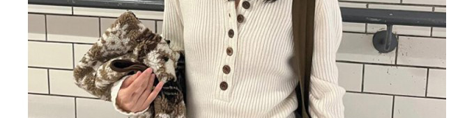Henley neck knit sweater. Slim fit, chic and versatile for autumn layering.