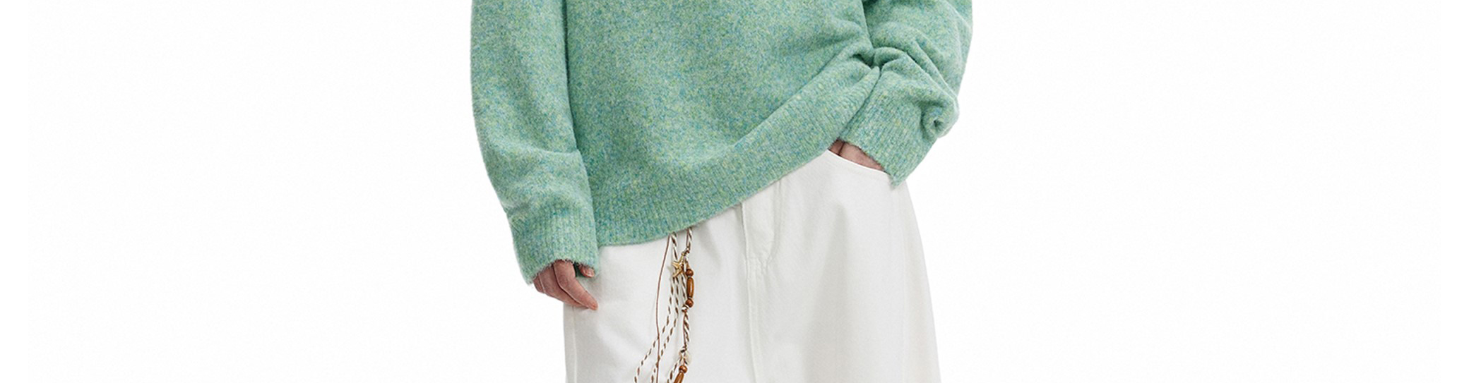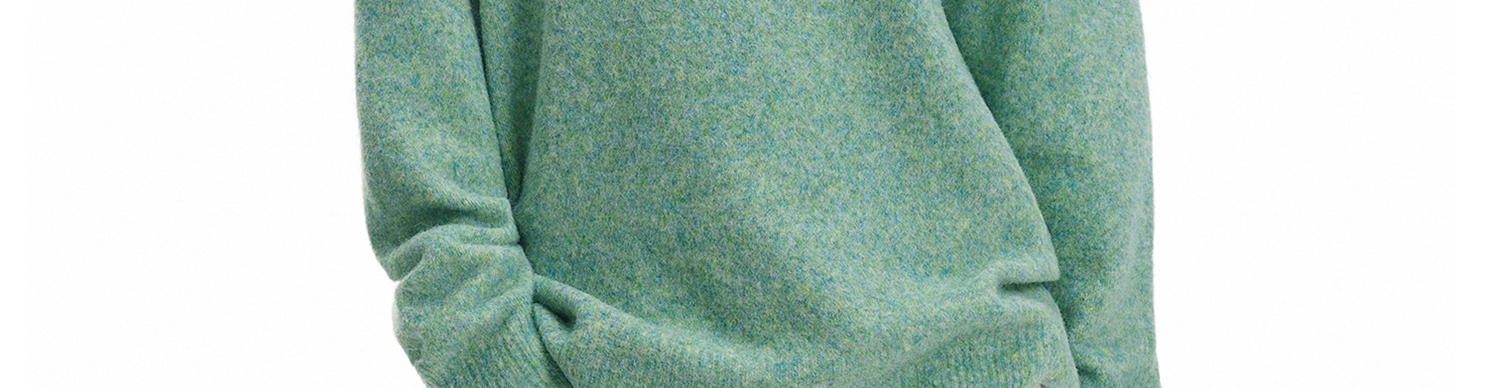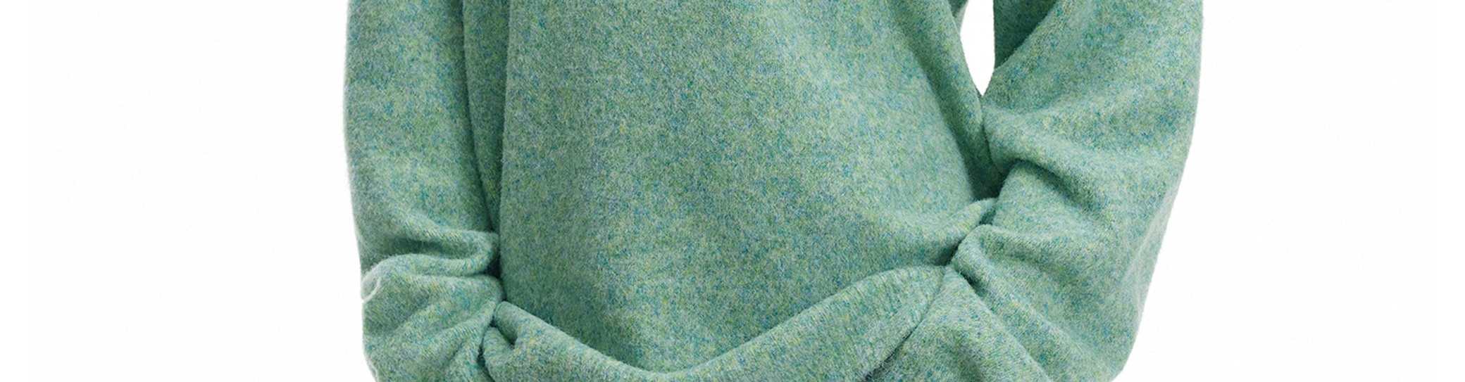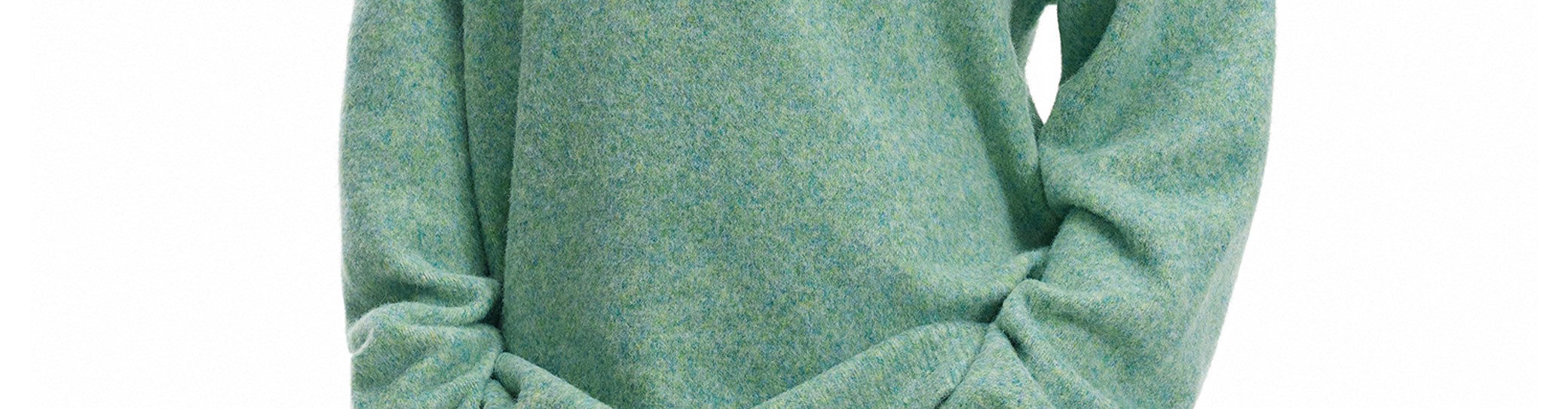 Retro green Henry collar knit sweater. Loose fit, cozy and casual for autumn wear.