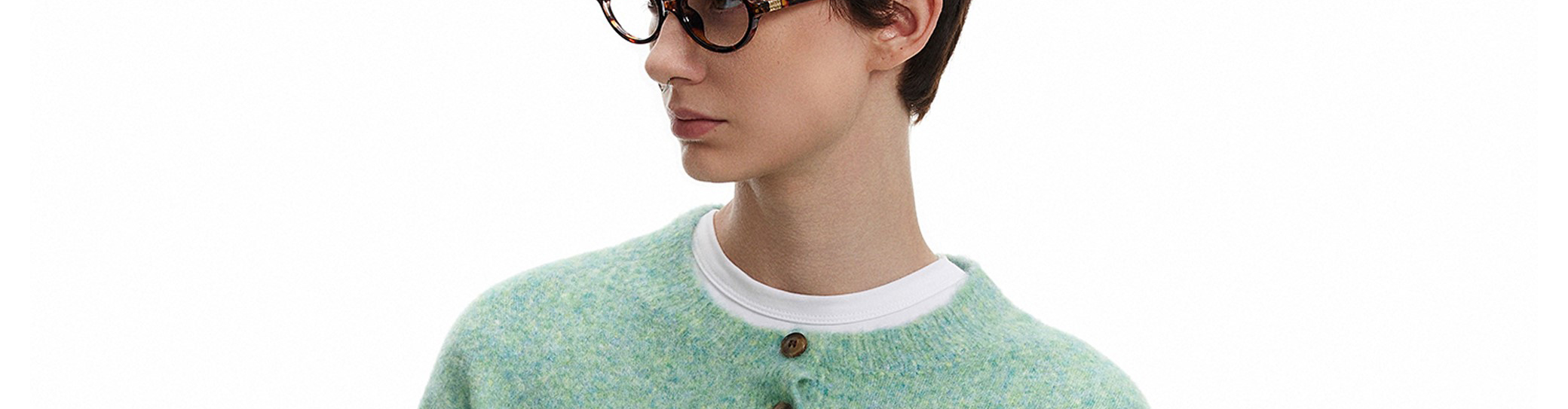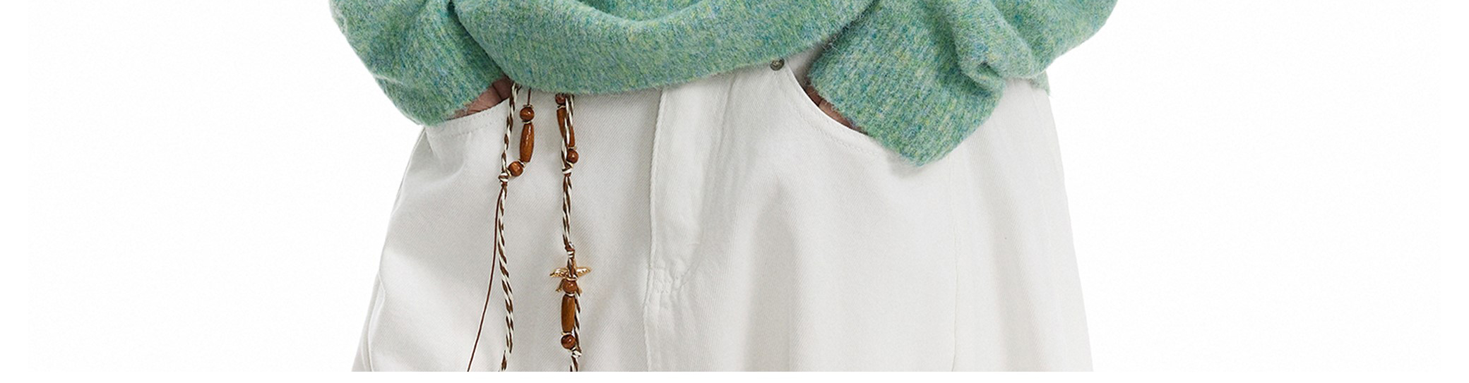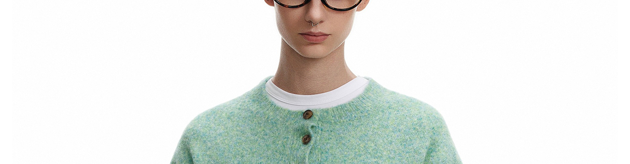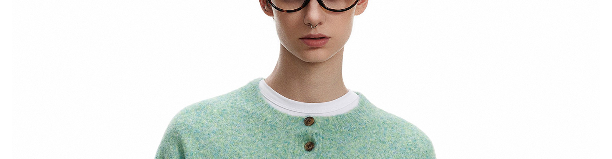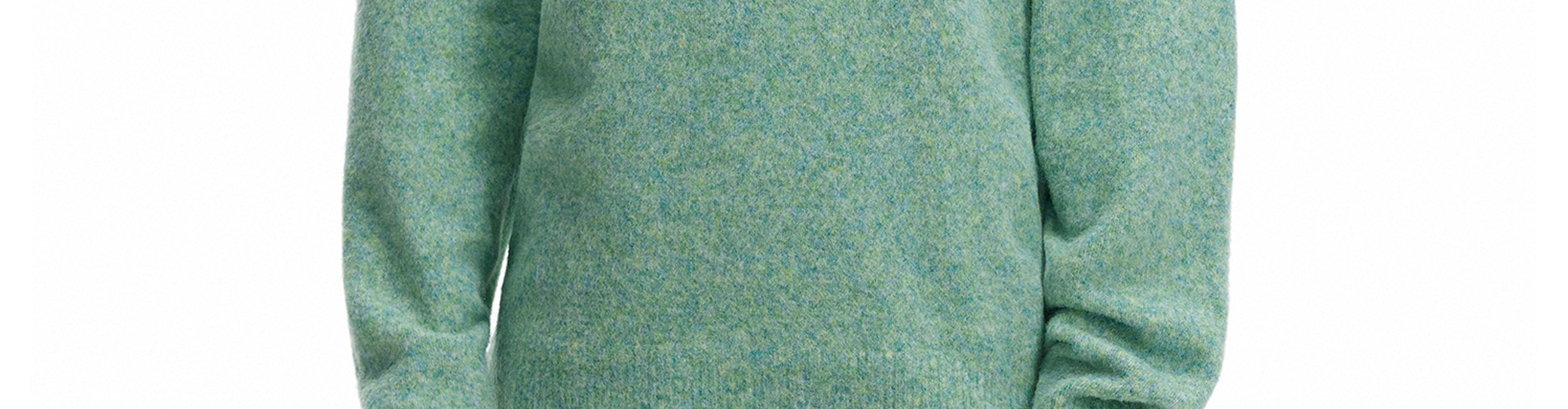 Retro green Henry collar knit sweater. Loose fit, cozy and casual for autumn wear.