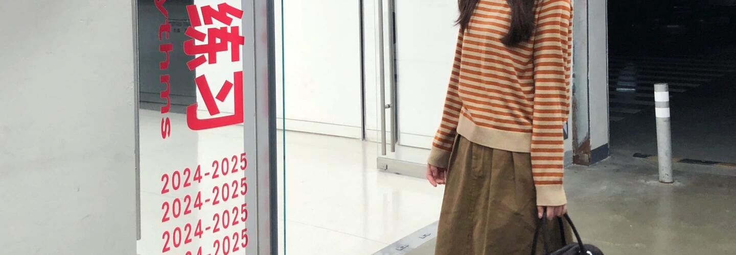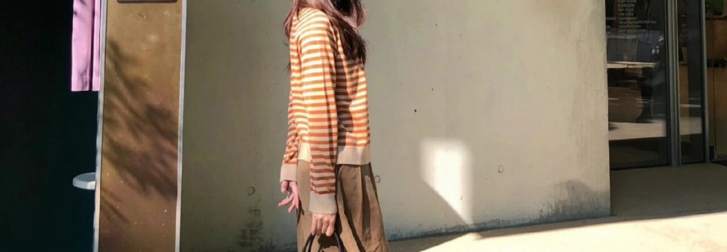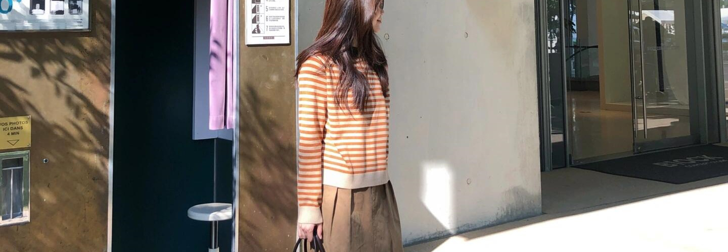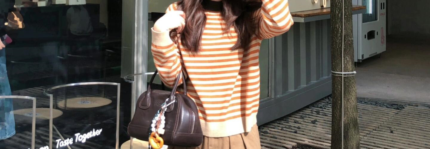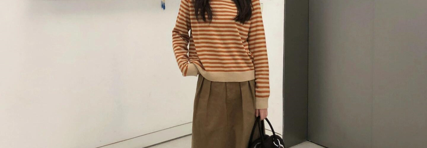 Japanese retro striped knit sweater with colorblock collar. Soft, cozy and perfect for early autumn casual wear.